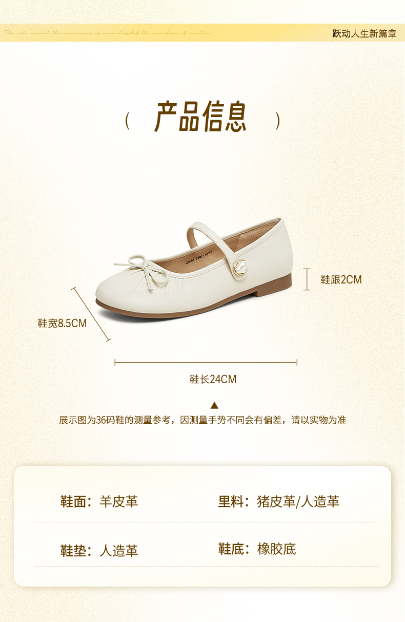 | 上市时间:2025年春季 | 鞋类流行款式:玛丽珍鞋 | 鞋头款式:圆头 | 跟高范围:低跟鞋(小于3CM) | 鞋面图案:纯色 |