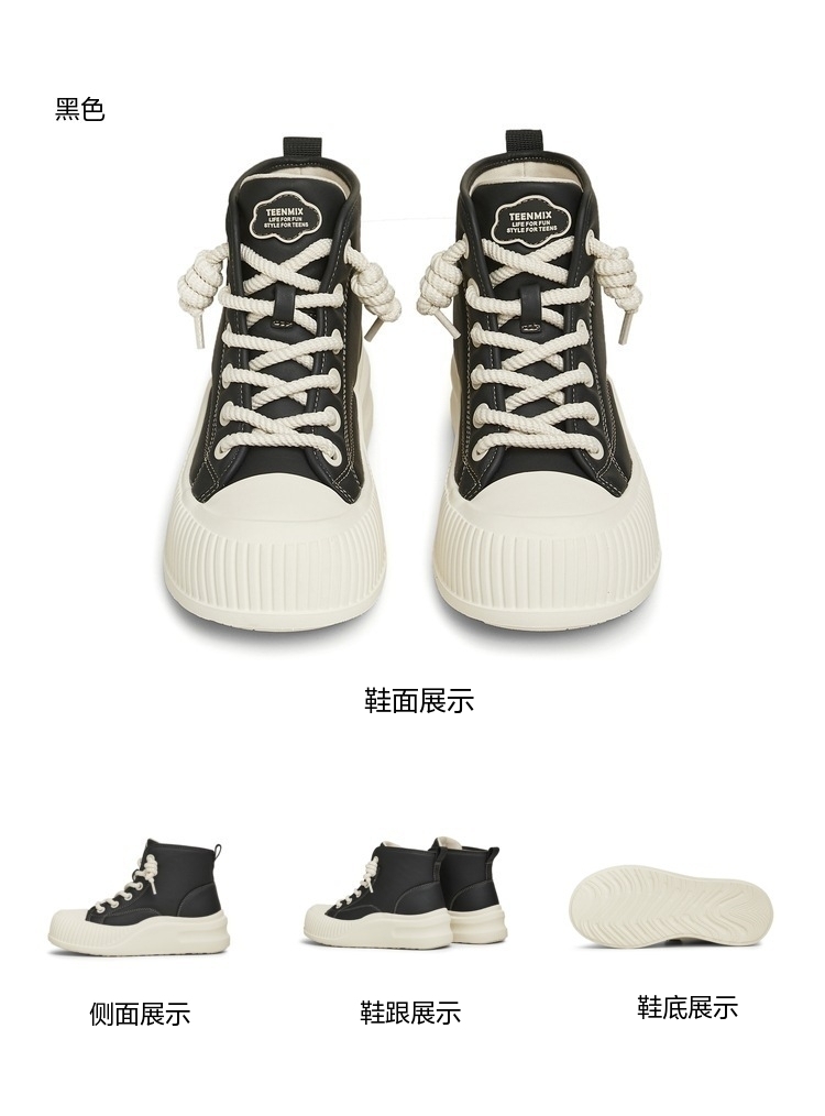 | 鞋底材质:IP底 | 靴筒内里材质:织物面料 | 内增高:无 | 鞋面材质:人造革 | 闭合方式:系带 |