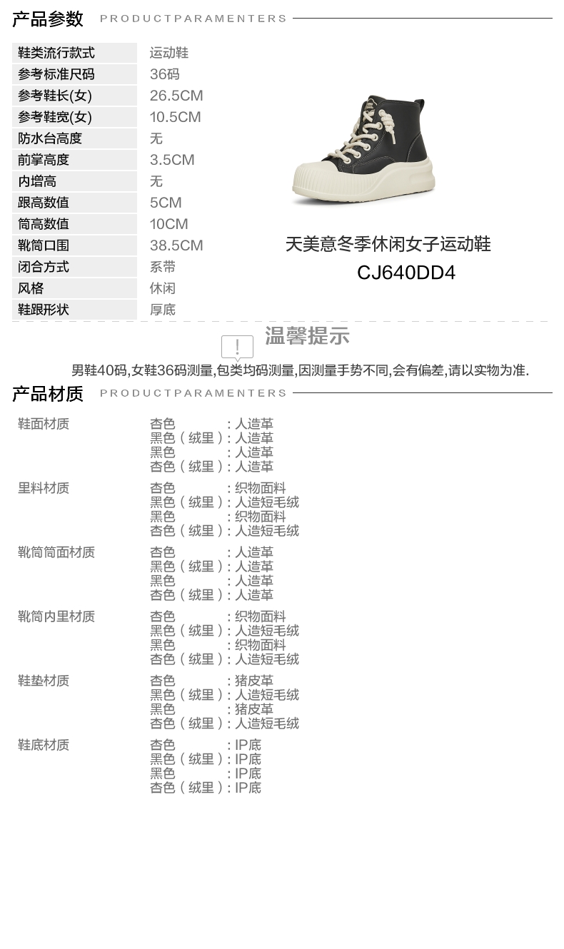 | 款式季节:冬季 | 前掌高度:3.5CM | 皮质特征:人造革 | 防水台高度:无 |