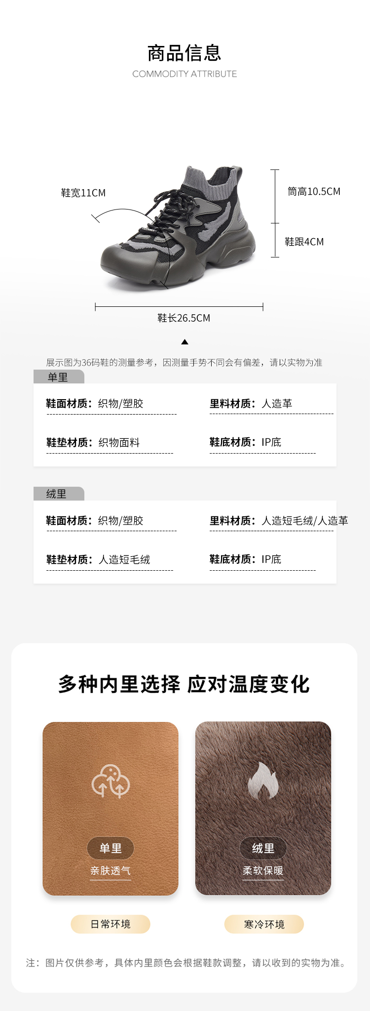 | 帮面材质:织物 | 靴筒口围:18CM | 风格分类:老爹鞋 | 上市时间:2025年春季 | 鞋类流行款式:运动鞋休闲鞋 |