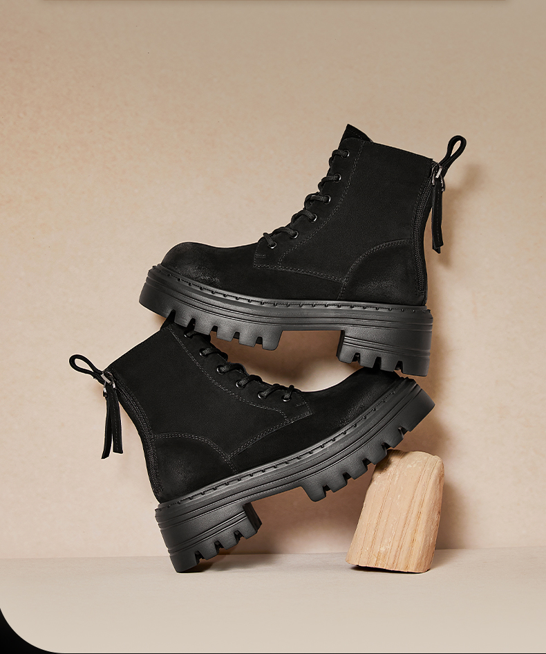 | 鞋底材质:IP底 | 靴筒内里材质:人造革织物面料 | 内增高:无 | 鞋面材质:羊皮革 | 闭合方式:后拉链系带 |