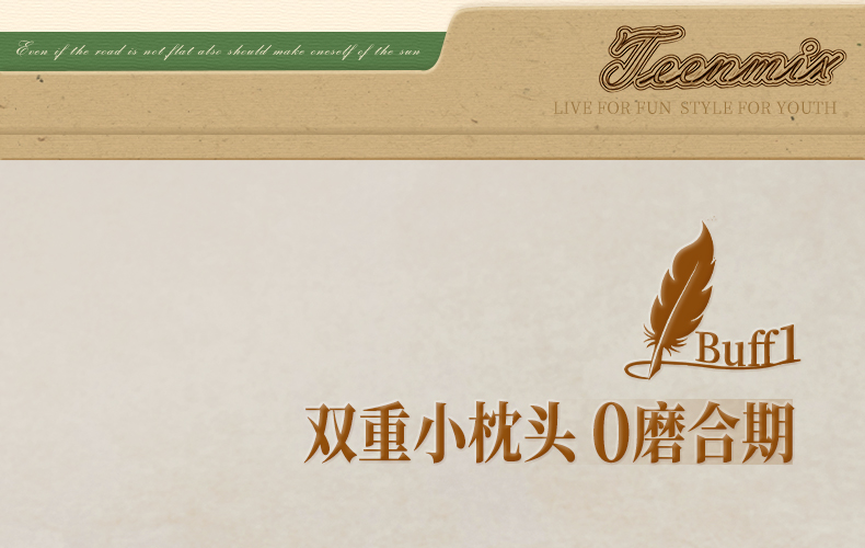 Teenmix(天美意),作为一个都市时尚休闲品牌,倡导“life for fun ,style for teens”即 “人生追求情趣,年轻追求个性”的生活品位,迎合都市年轻人不拘一格,追求mix&match自由组合,创出自我风格的潮流理念。Teenmix向人们展示了流行的转变,强调创意与个性,“teen”代表一群张扬个性、散发活力、追求都市炫彩生活的新新人群;“ mix”即mix&match,代表时尚混搭精神,品牌为年轻人提供恍如贴身订造的时尚潮品,并因应时尚的转变而响应。“随我意,天美意”传达了品牌的主张与个性。