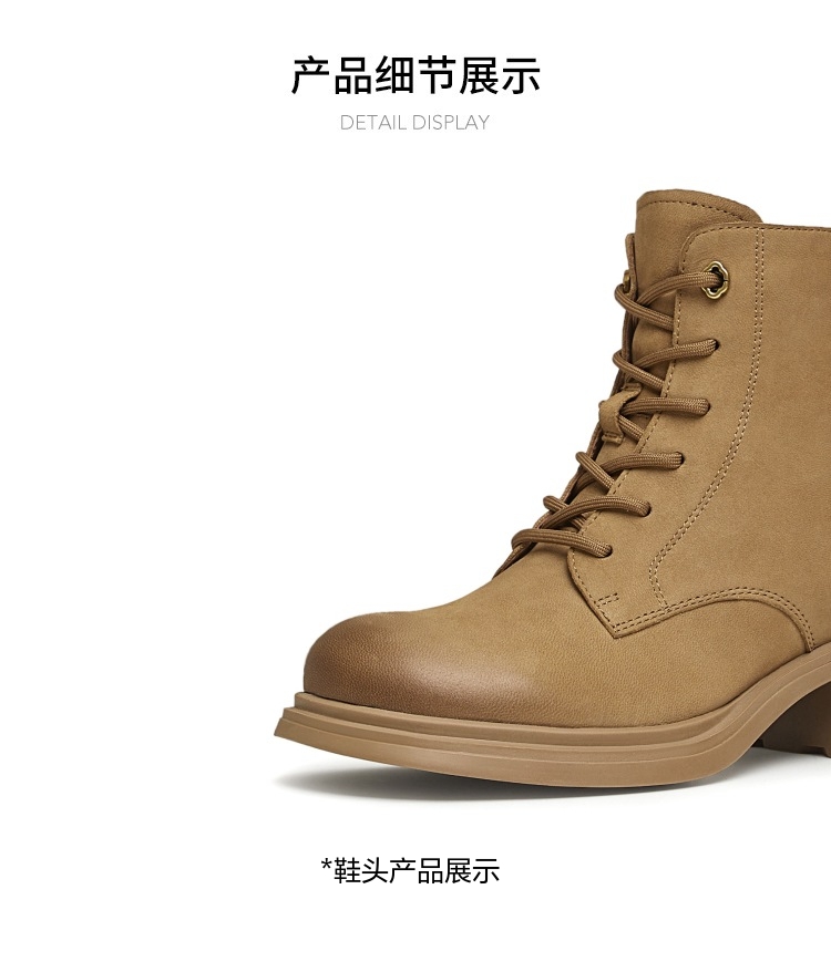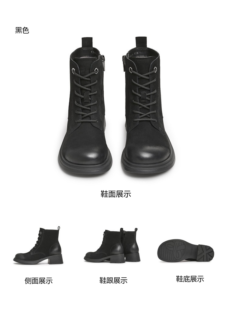 | 鞋底材质:橡胶底 | 靴筒内里材质:织物面料人造革 | 内增高:无 | 鞋面材质:羊皮革 | 闭合方式:系带 |