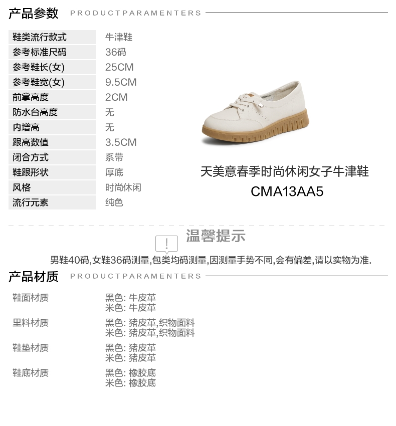 | 风格:时尚休闲 | 年份:2025年 | 色系:米色 | 参考标准尺码:36码 | 跟高数值:3.5CM |