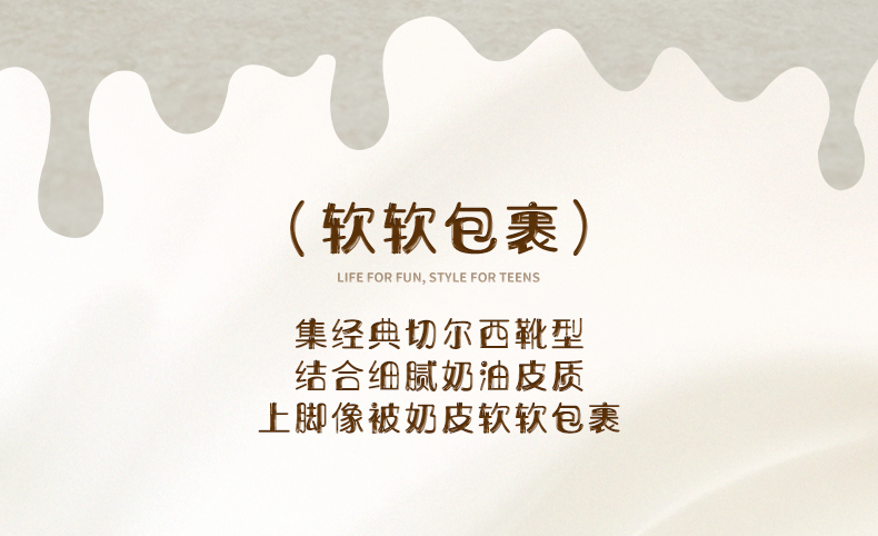 Teenmix(天美意),作为一个都市时尚休闲品牌,倡导“life for fun ,style for teens”即 “人生追求情趣,年轻追求个性”的生活品位,迎合都市年轻人不拘一格,追求mix&match自由组合,创出自我风格的潮流理念。Teenmix向人们展示了流行的转变,强调创意与个性,“teen”代表一群张扬个性、散发活力、追求都市炫彩生活的新新人群;“ mix”即mix&match,代表时尚混搭精神,品牌为年轻人提供恍如贴身订造的时尚潮品,并因应时尚的转变而响应。“随我意,天美意”传达了品牌的主张与个性。