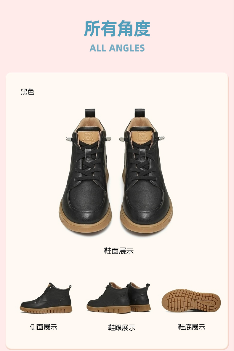 | 鞋底材质:橡胶底 | 靴筒内里材质:织物面料猪皮革 | 内增高:无 | 鞋面材质:牛皮革 | 闭合方式:系带 |