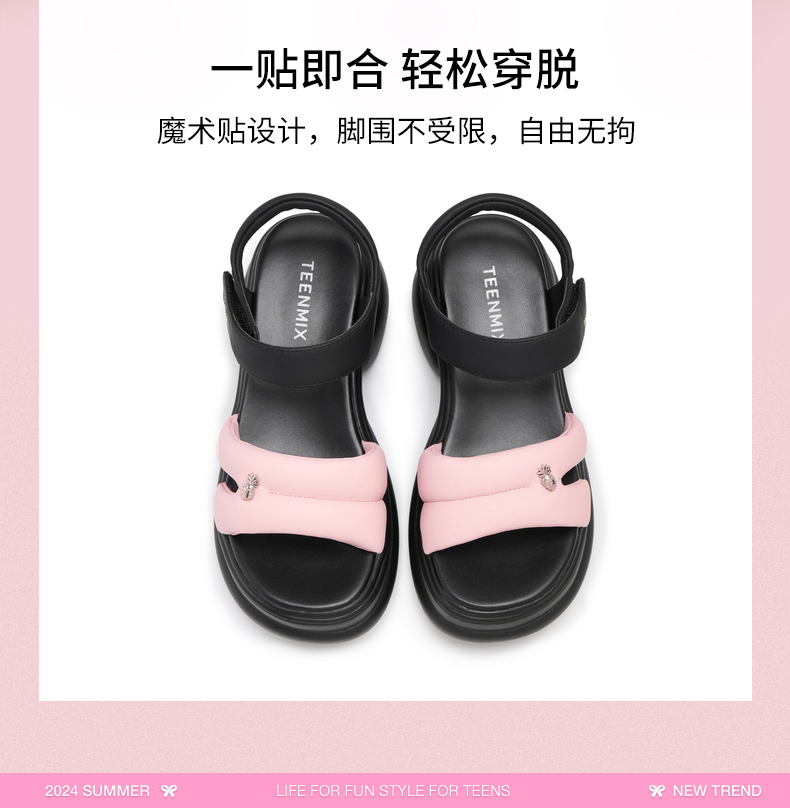 | 上市时间:2024年夏季 | 制鞋工艺:胶贴皮鞋 | 款式季节:夏季 | 鞋垫材质:人造革 | 前掌高度:4CM |