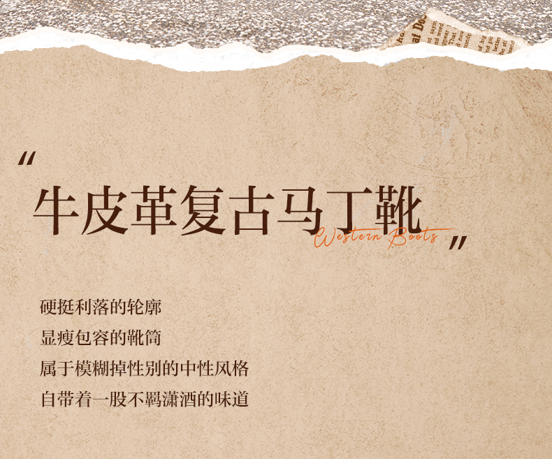 | 靴筒筒面材质:牛皮革 | 里料材质:织物人造革 | 制鞋工艺:胶贴皮鞋 | 鞋垫材质:猪皮革 | 款式季节:冬季 |