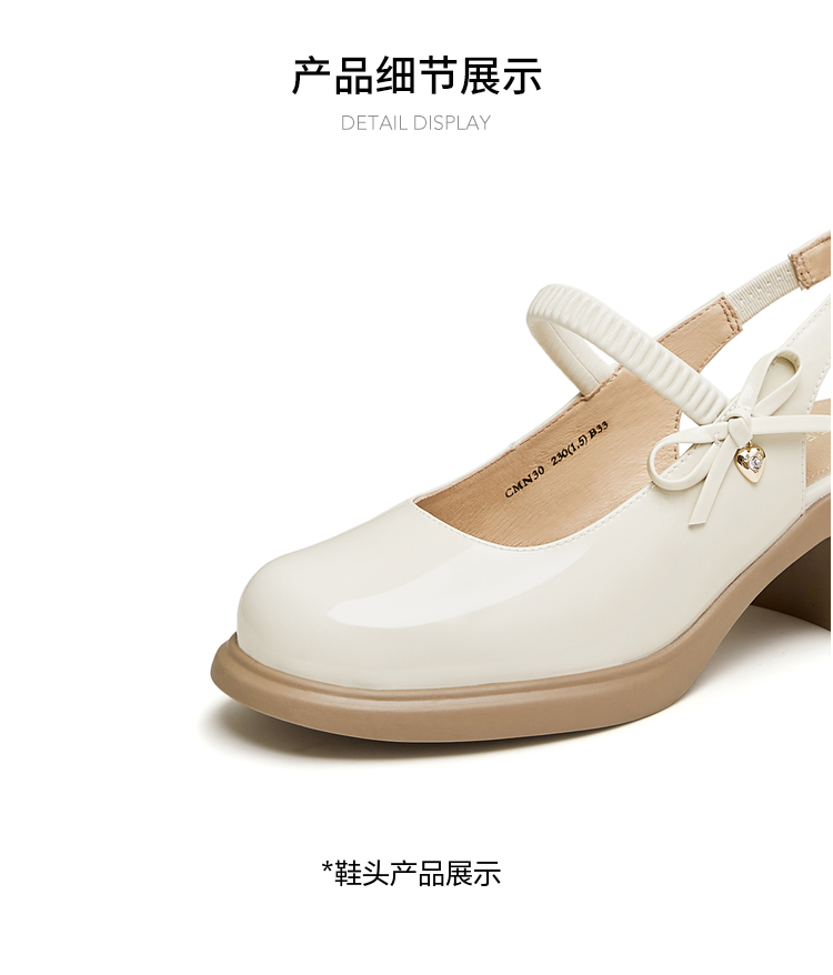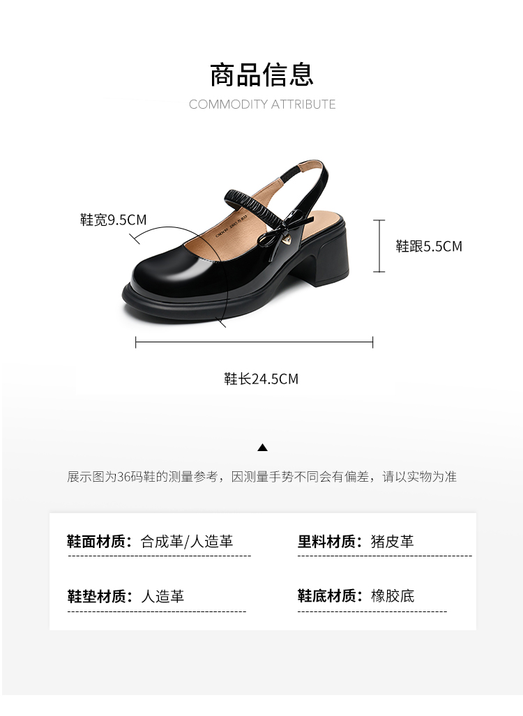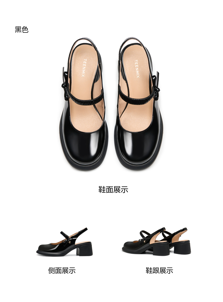 | 鞋头款式:包头 | 鞋底材质:橡胶底 | 鞋面图案:纯色 | 鞋跟形状:粗跟 | 鞋面材质:合成革人造革 |