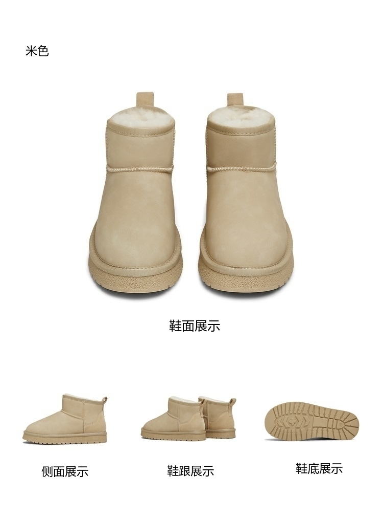 | 帮面材质:牛剖层革 | 配跟:无 | 靴筒口围:34CM | 上市时间:2025年冬季 | 鞋类流行款式:雪地靴 |