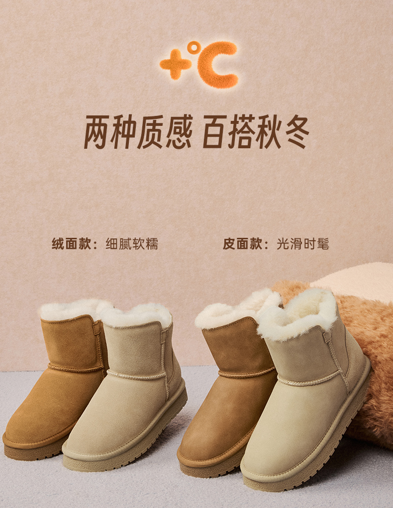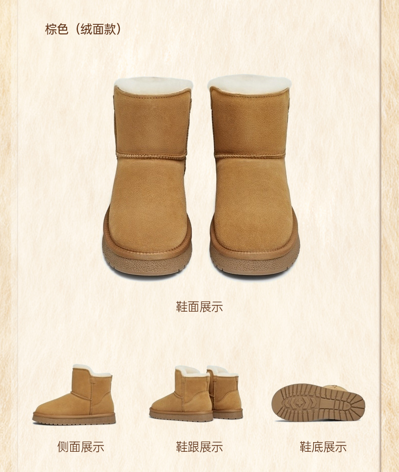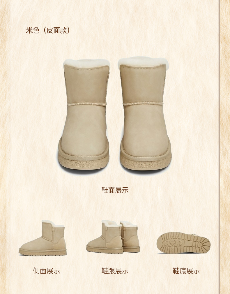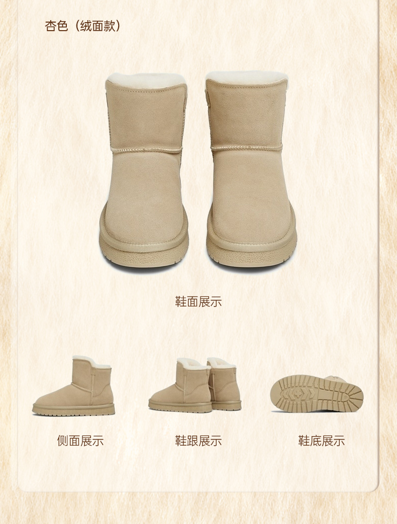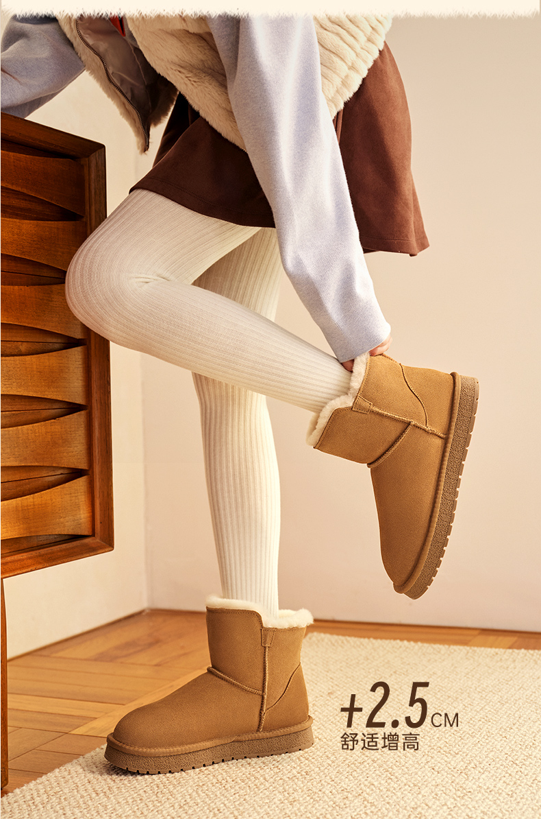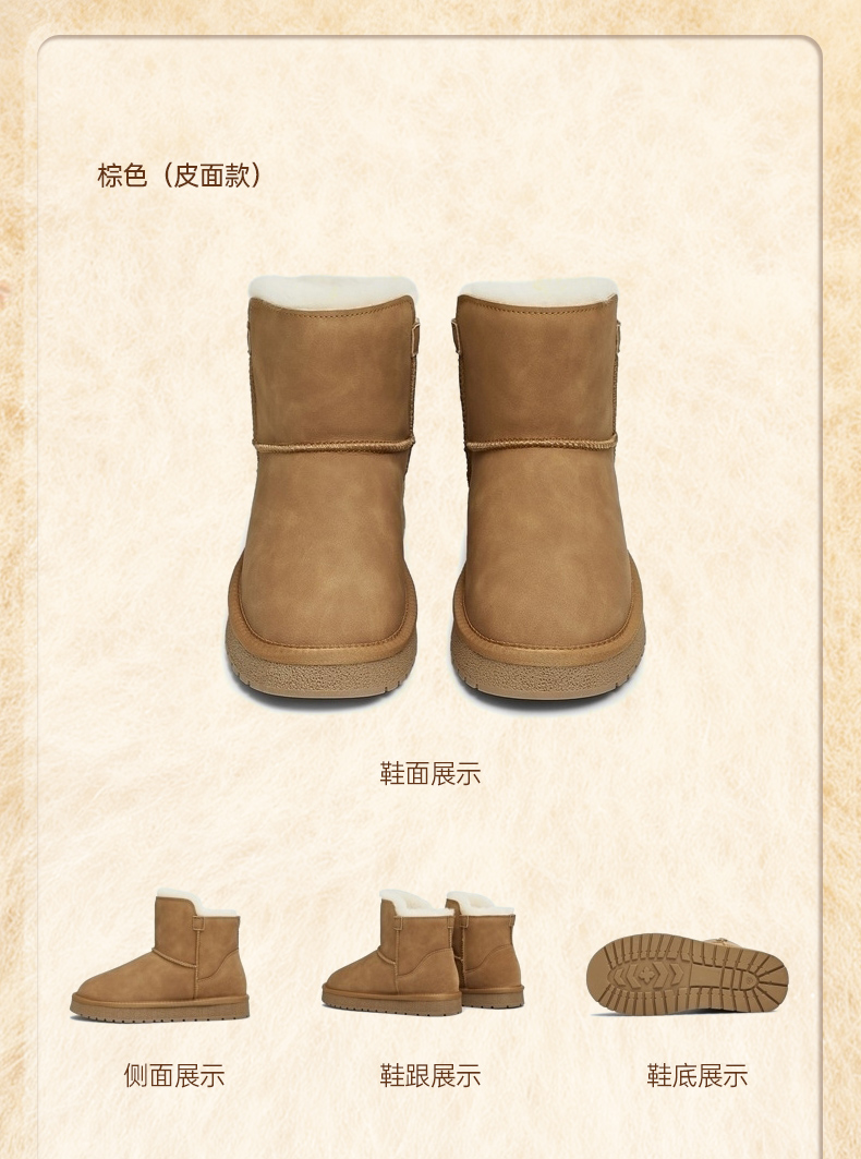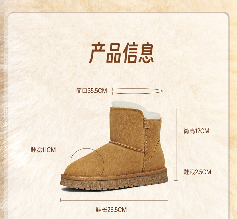 | 帮面材质:牛剖层革 | 配跟:无 | 靴筒口围:35.5CM | 上市时间:2025年冬季 | 鞋类流行款式:雪地靴 |