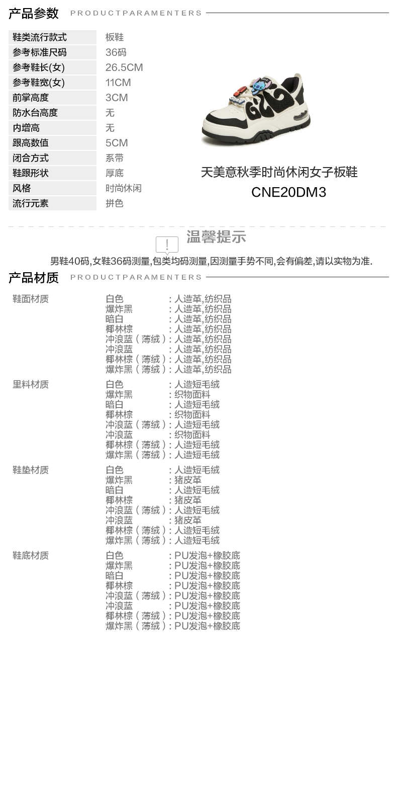 | 上市时间:2023年秋季2023年秋季 | 生产/经销/进口厂家: | 鞋类流行款式:板鞋板鞋 | 鞋头款式:圆头圆头 | 执行标准:休闲鞋 QB/T2955-2017休闲鞋 QB/T2955-2017 |