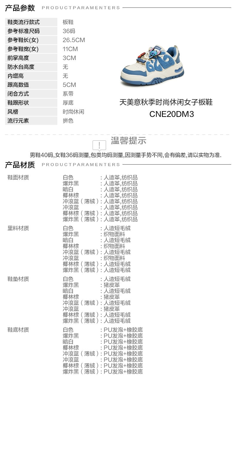 | 上市时间:2023年秋季2023年秋季 | 生产/经销/进口厂家: | 鞋类流行款式:板鞋板鞋 | 鞋头款式:圆头圆头 | 执行标准:休闲鞋 QB/T2955-2017休闲鞋 QB/T2955-2017 |