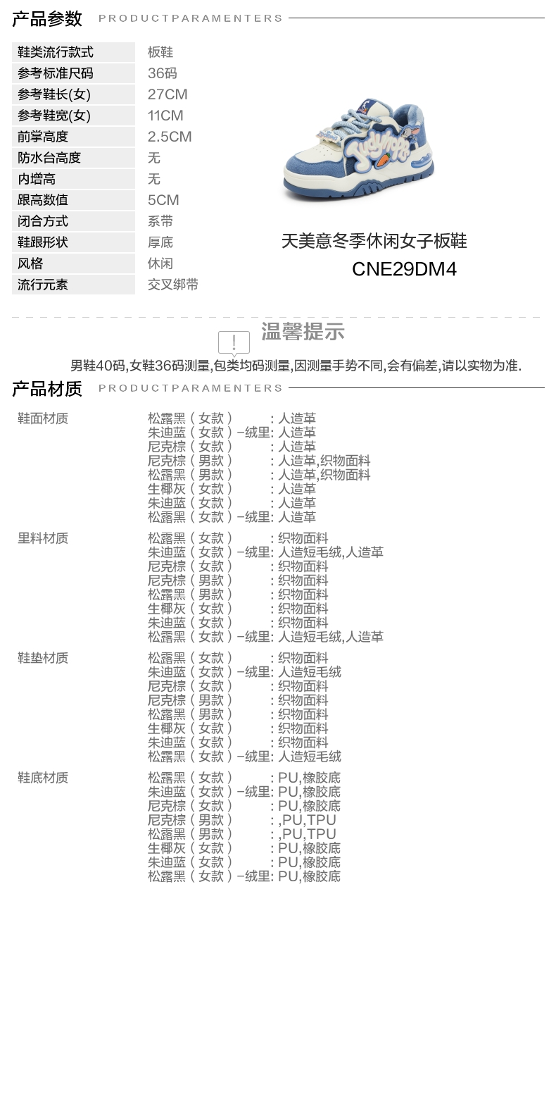 | 参考鞋宽(女):11CM | 风格:休闲 | 年份:2024年 | 色系:蓝色 | 参考标准尺码:36码 |