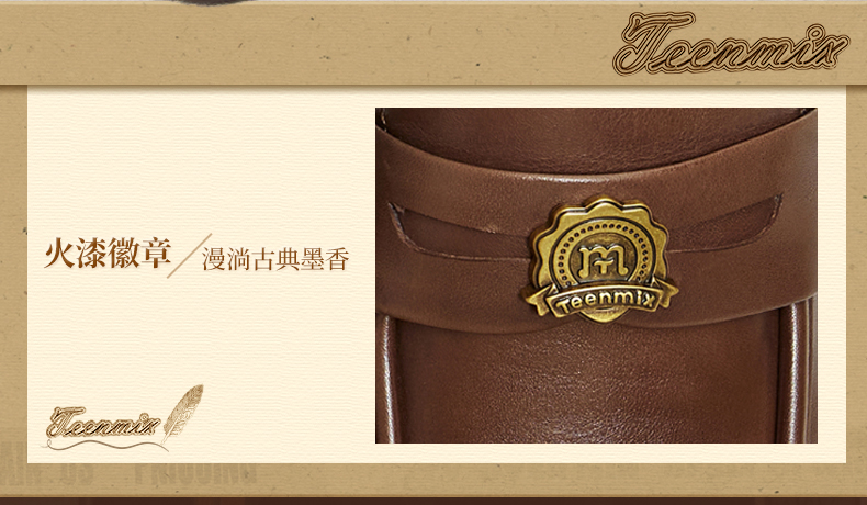 Teenmix(天美意),作为一个都市时尚休闲品牌,倡导“life for fun ,style for teens”即 “人生追求情趣,年轻追求个性”的生活品位,迎合都市年轻人不拘一格,追求mix&match自由组合,创出自我风格的潮流理念。Teenmix向人们展示了流行的转变,强调创意与个性,“teen”代表一群张扬个性、散发活力、追求都市炫彩生活的新新人群;“ mix”即mix&match,代表时尚混搭精神,品牌为年轻人提供恍如贴身订造的时尚潮品,并因应时尚的转变而响应。“随我意,天美意”传达了品牌的主张与个性。