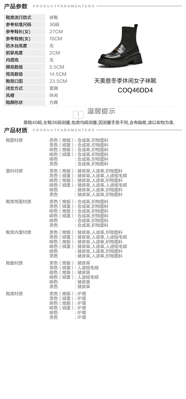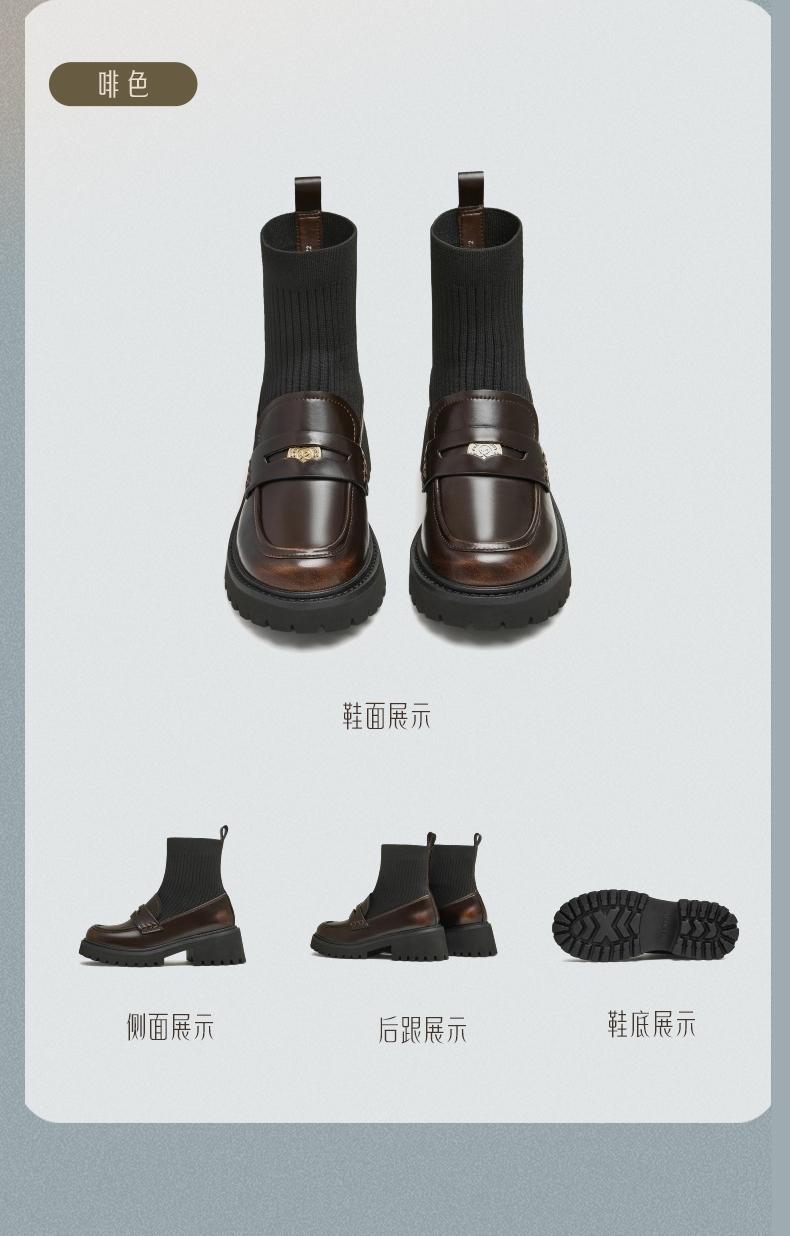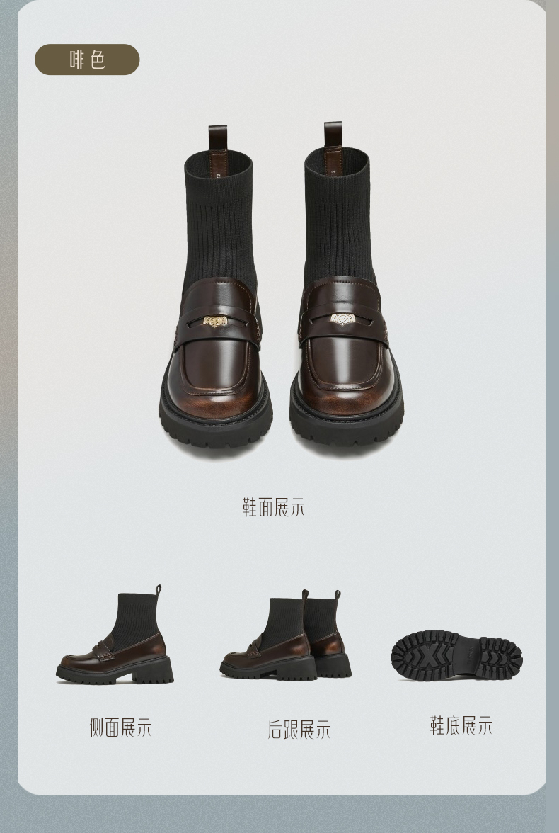 | 帮面材质:合成革 | 靴筒口围:23.5CM | 风格分类:袜靴 | 上市时间:2024年冬季 | 鞋类流行款式:袜靴 |
