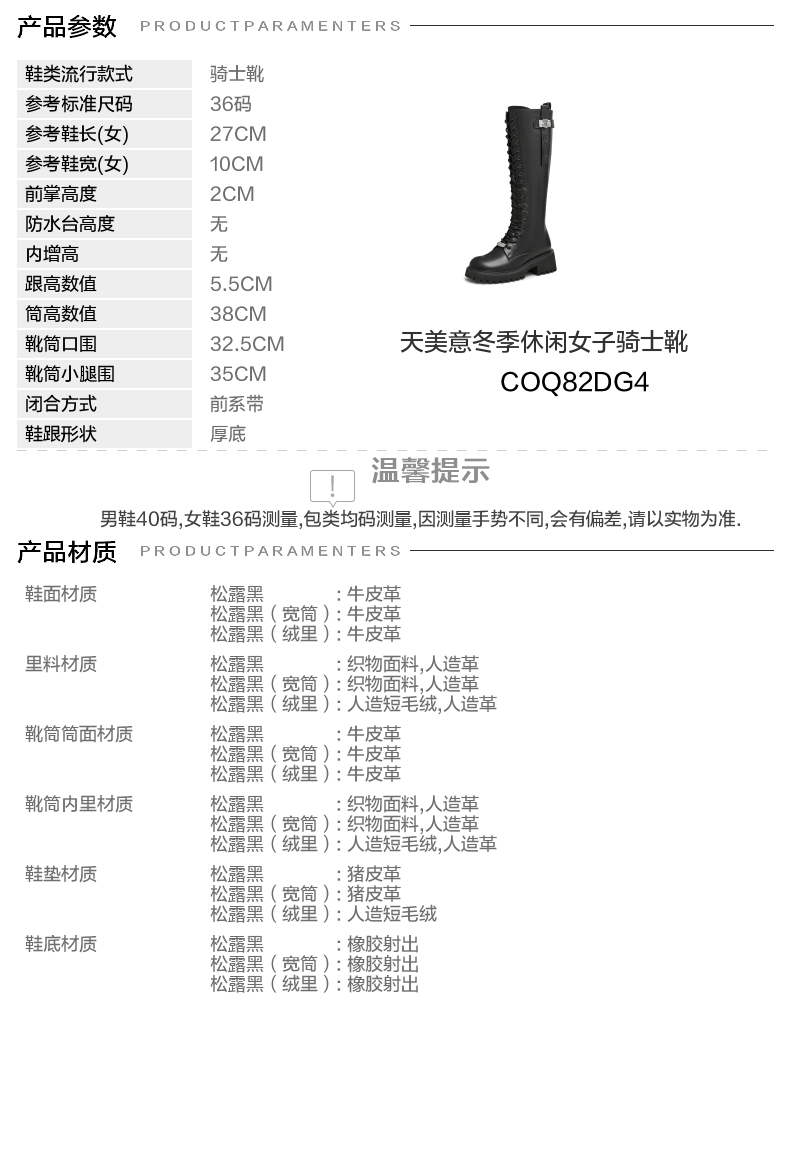 | 靴筒口围:32.5CM | 风格分类:骑士靴 | 上市时间:2024年冬季 | 鞋类流行款式:骑士靴 | 鞋头款式:圆头 |