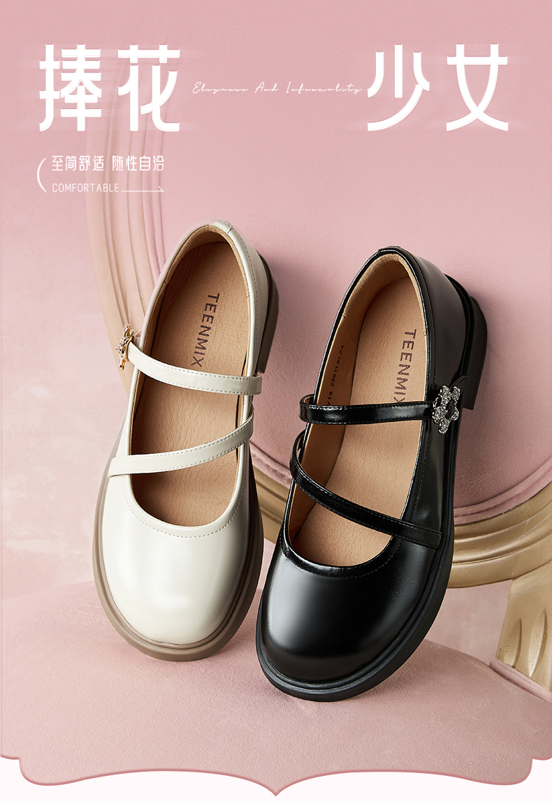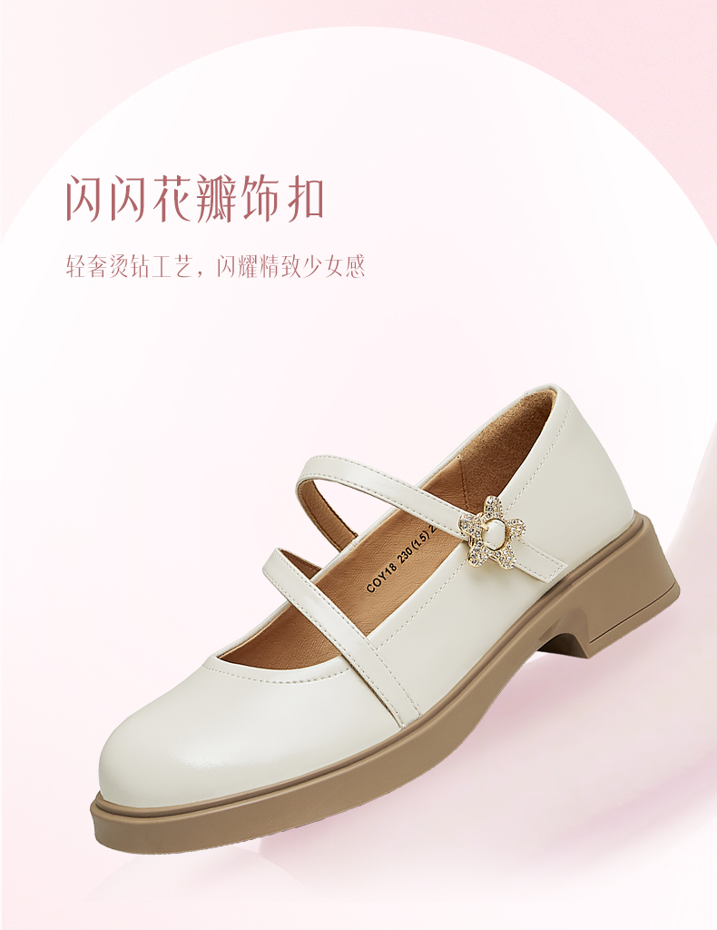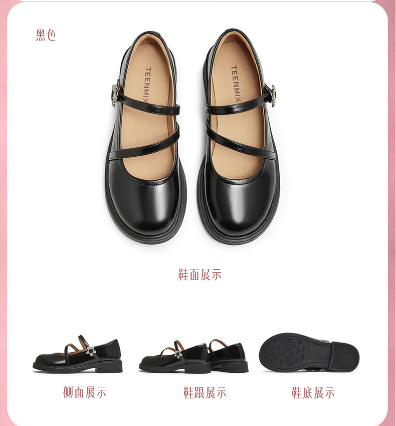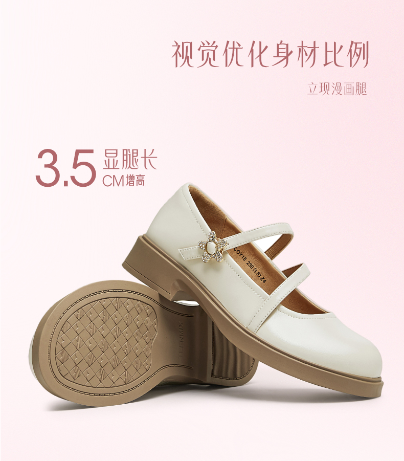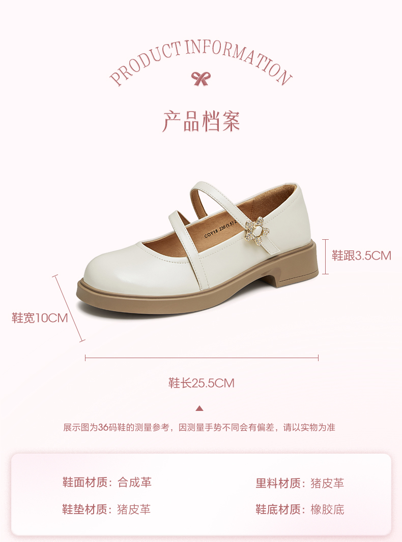 | 上市时间:2024年秋季 | 鞋类流行款式:玛丽珍鞋 | 鞋头款式:圆头 | 跟高范围:中跟鞋(3-5CM) | 鞋面图案:纯色 |