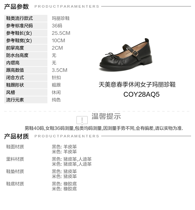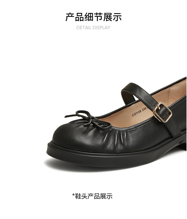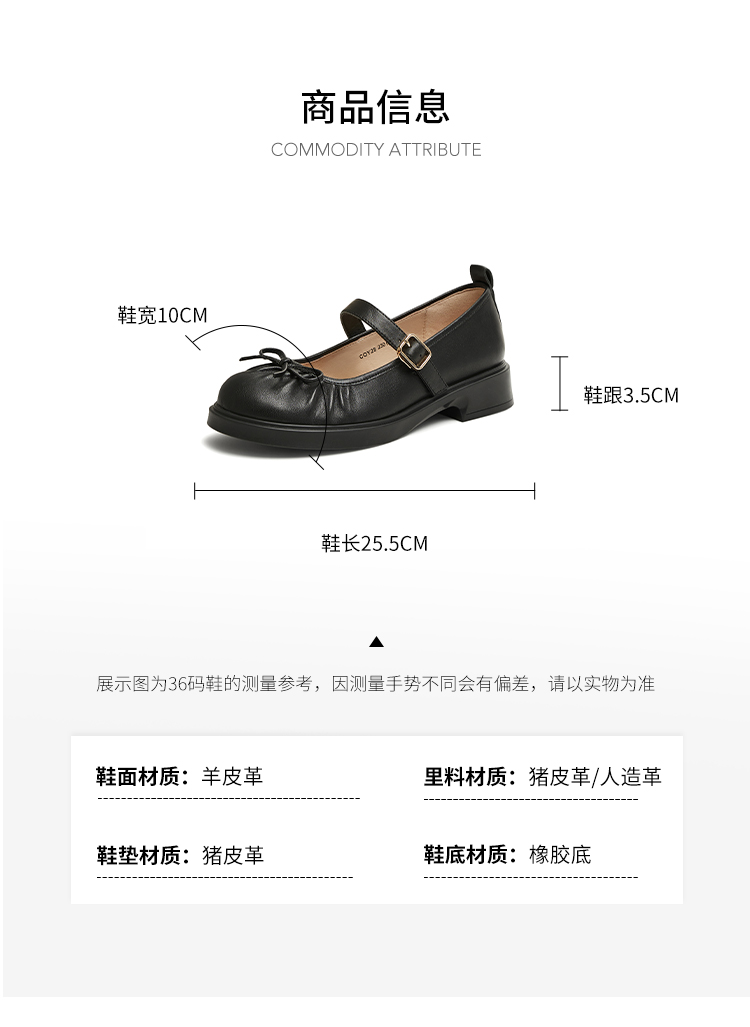 | 上市时间:2025年春季 | 鞋类流行款式:玛丽珍鞋 | 鞋头款式:圆头 | 跟高范围:中跟鞋(3-5CM) | 鞋面图案:纯色 |