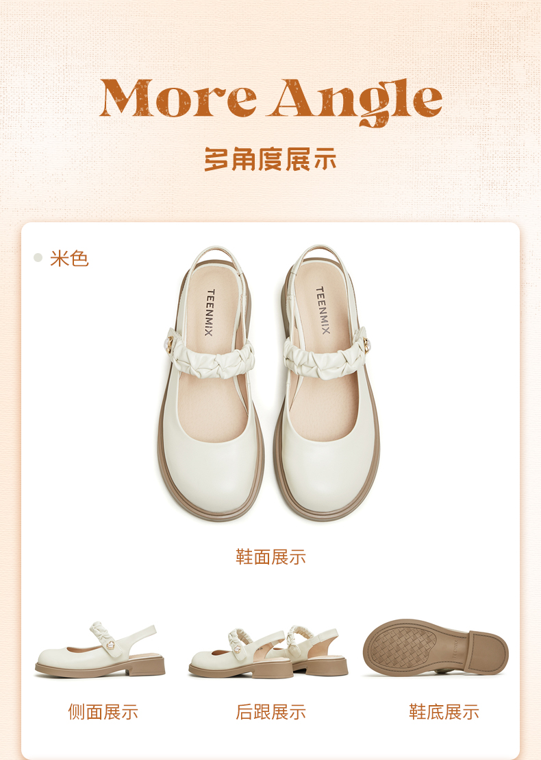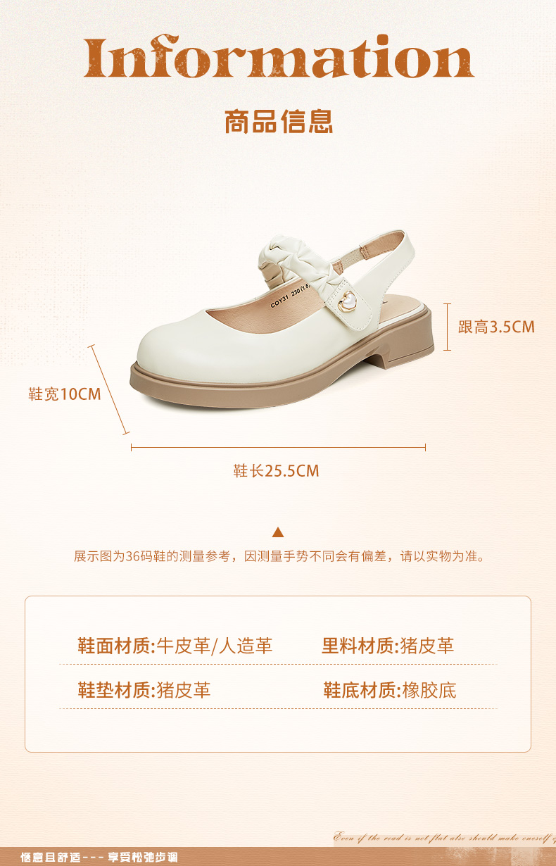 | 跟高数值:3.5CM | 色系:米色 | 配跟:无 | 性别:女子 | 里料材质:猪皮革 |