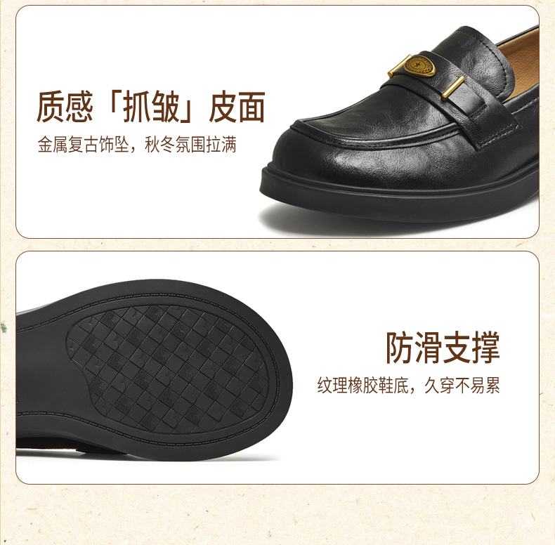 | 鞋垫材质:猪皮革 | 前掌高度:无 | 皮质特征:合成革 | 鞋类流行款式:乐福鞋 |