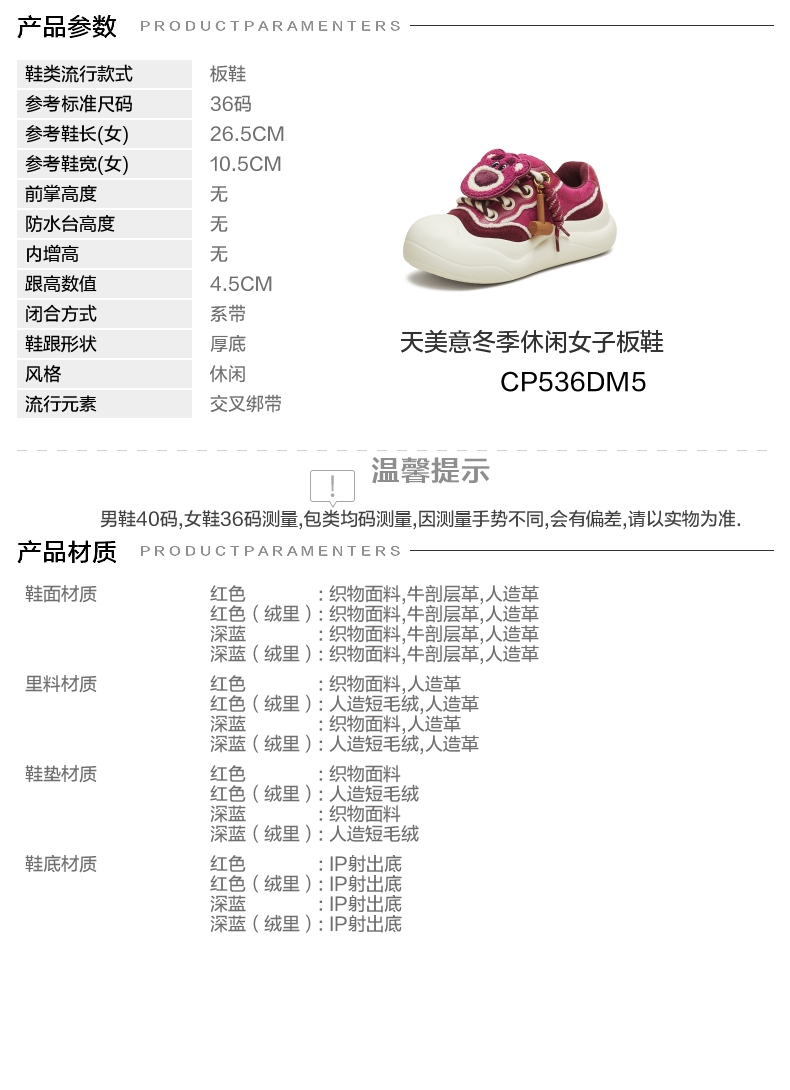 | 闭合方式:系带 | 配跟:无 | 上市时间:2025年冬季 | 鞋类流行款式:板鞋 | 鞋头款式:圆头 |