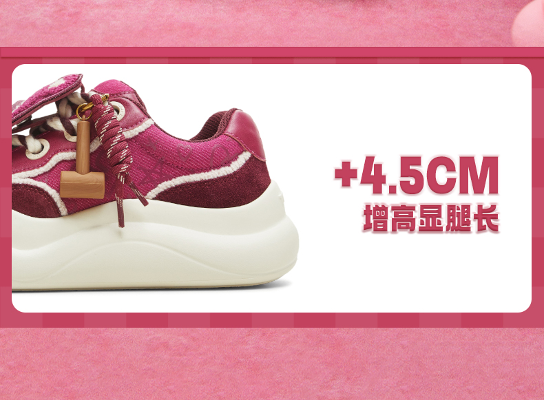 | 风格:休闲 | 色系:红色 | 跟高数值:4.5CM | 性别:女子 | 里料材质:人造革人造短毛绒 |