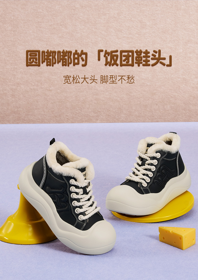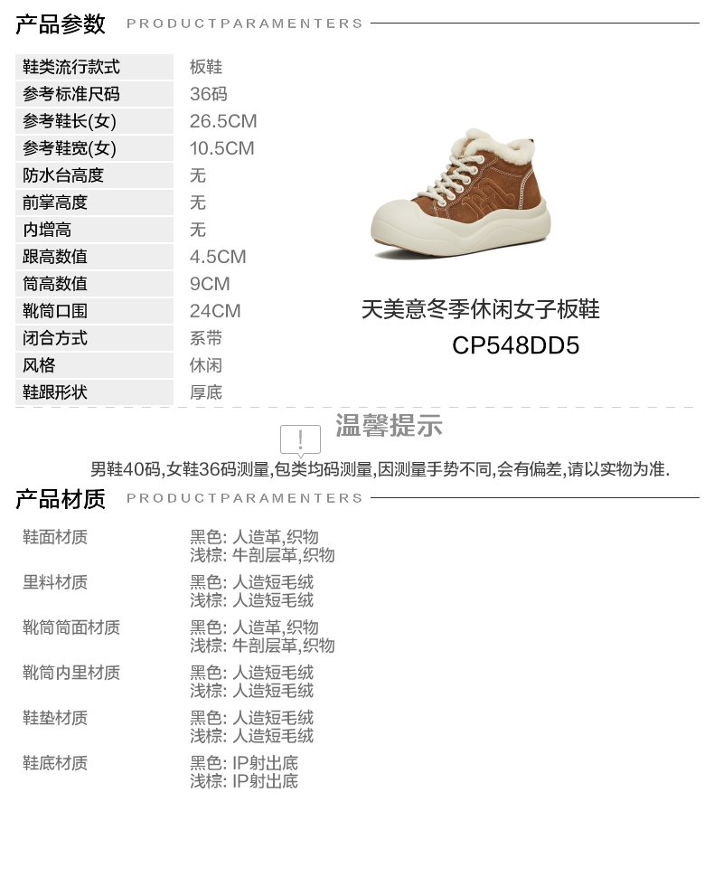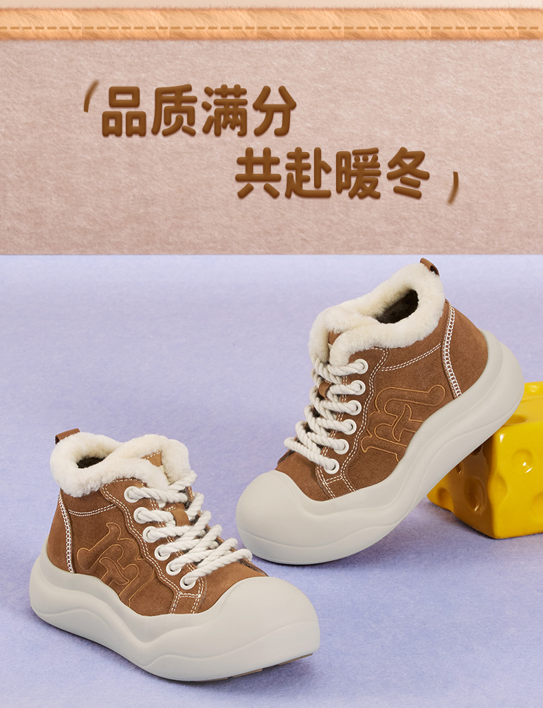 | 帮面材质:织物牛剖层革 | 配跟:无 | 靴筒口围:24CM | 上市时间:2025年冬季 | 鞋类流行款式:板鞋 |