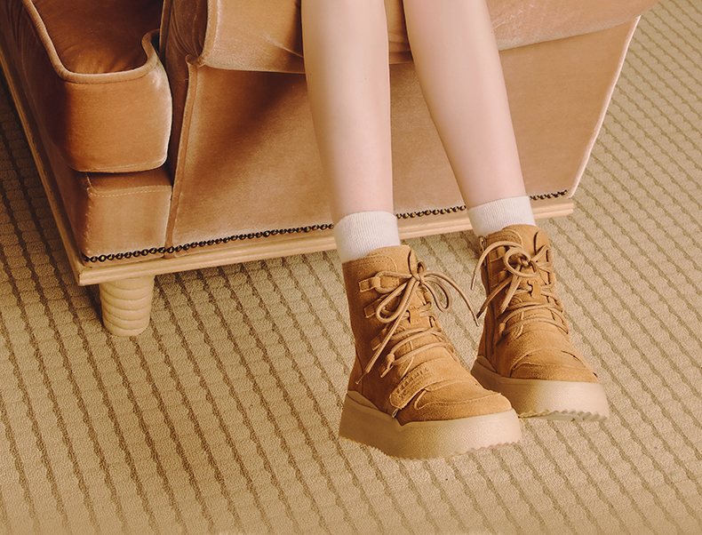 帮面材质:牛剖层革 配跟:无 靴筒口围:40CM 上市时间:2024年冬季 鞋类流行款式:雪地靴