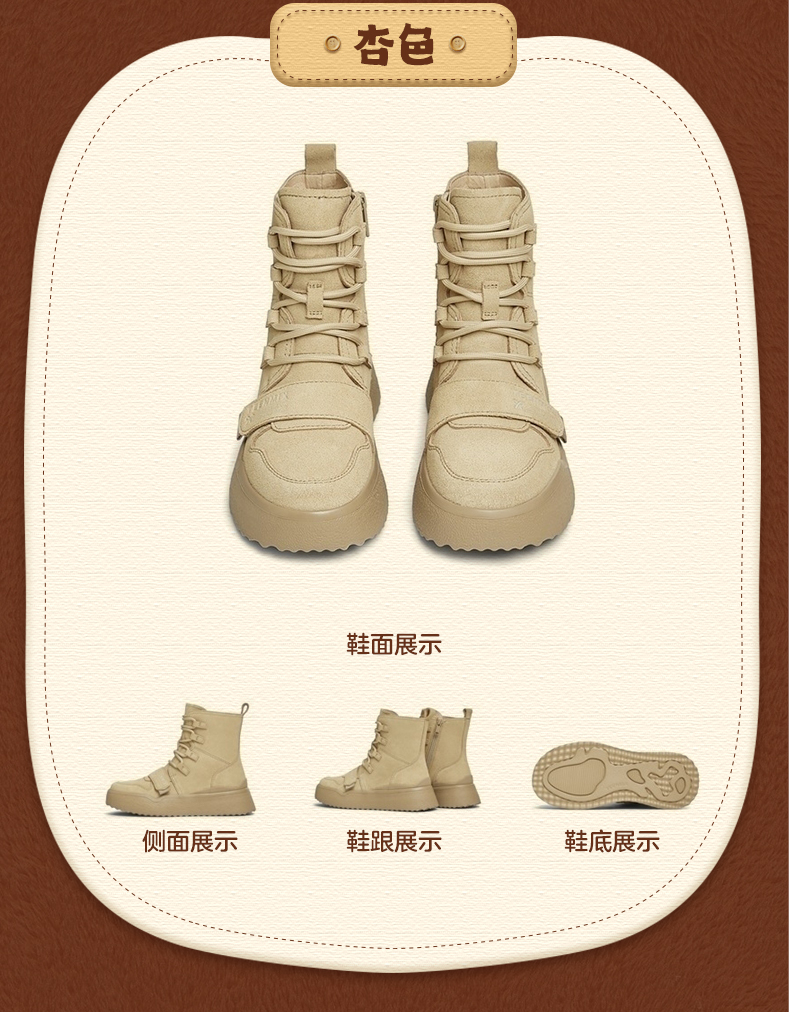 参考鞋宽(女):11CM 风格:休闲 色系:杏色 跟高数值:4.5CM 筒高数值:14CM