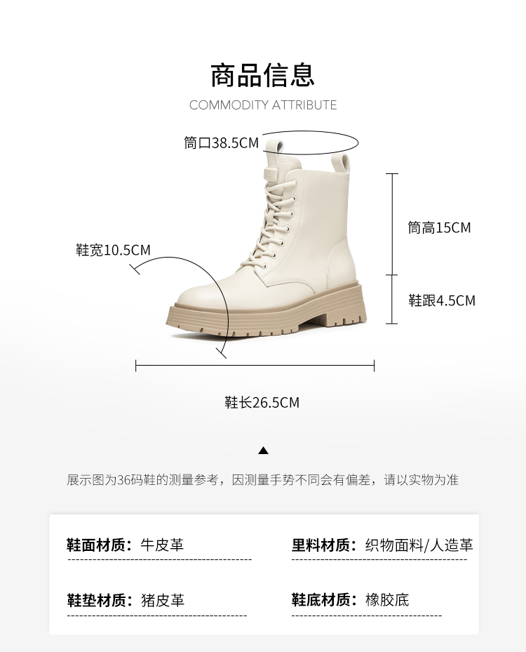 | 帮面材质:牛皮革 | 靴筒口围:38.5CM | 风格分类:马丁靴 | 上市时间:2024年冬季 | 鞋类流行款式:马丁靴 |