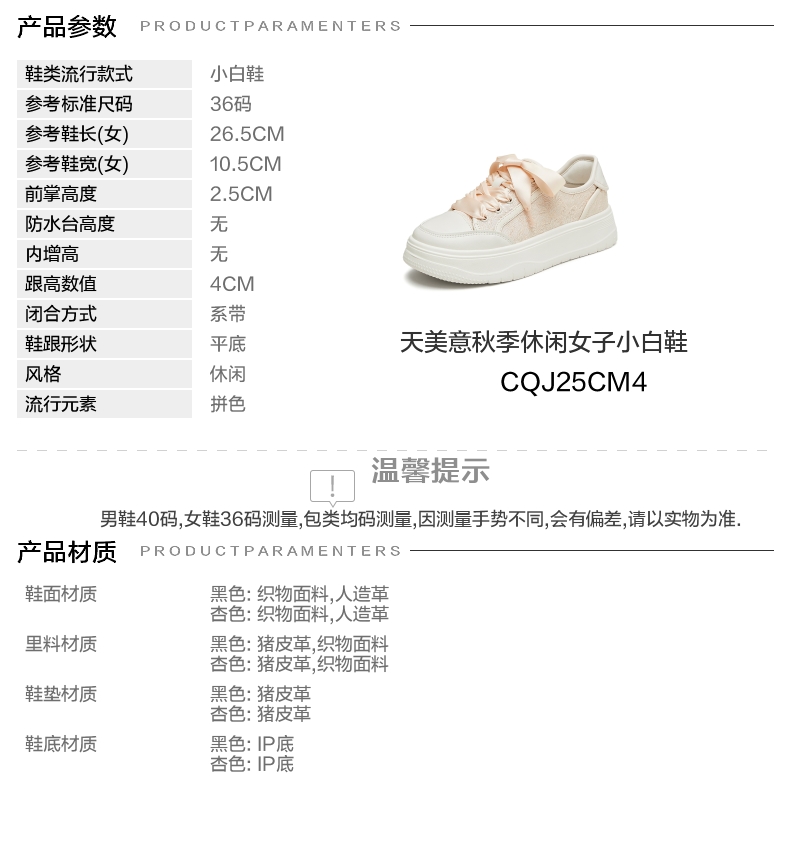 | 色系:杏色 | 跟高数值:4CM | 性别:女子 | 里料材质:织物面料猪皮革 | 制鞋工艺:胶贴皮鞋 |