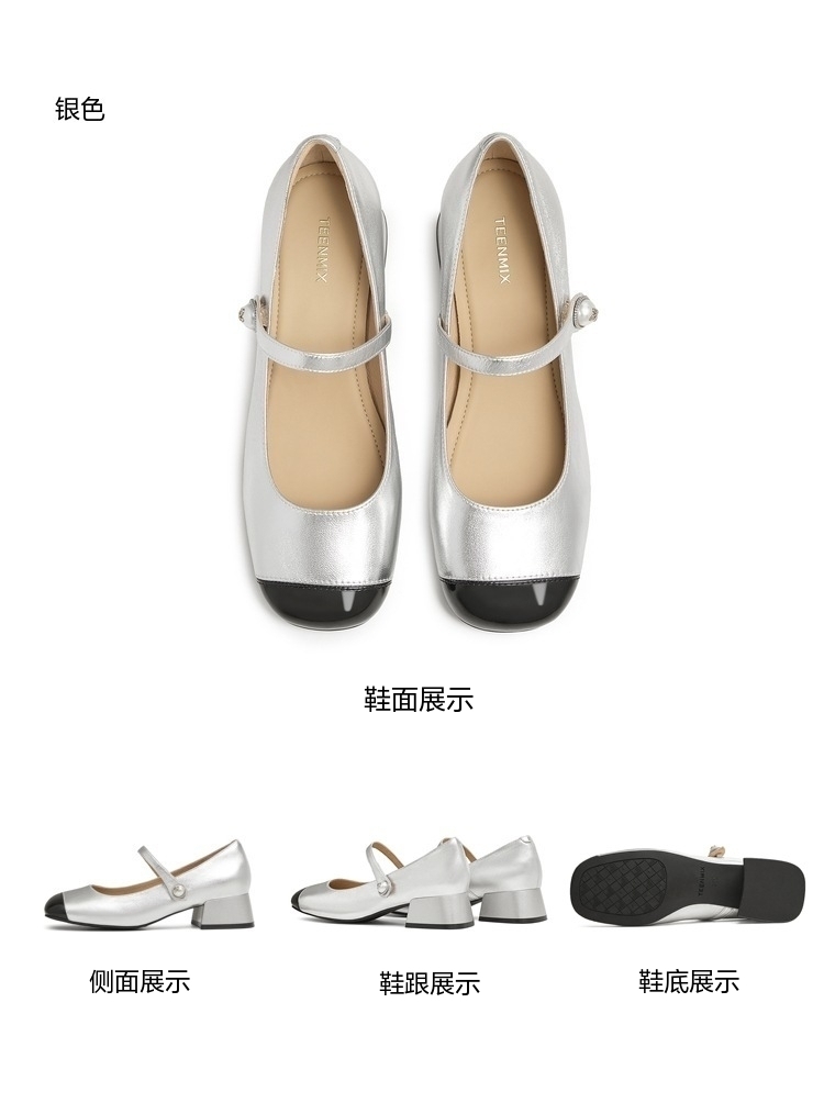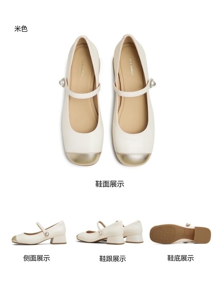 | 上市时间:2025年春季 | 鞋类流行款式:玛丽珍鞋 | 鞋头款式:圆头 | 跟高范围:中跟鞋(3-5CM) | 鞋面图案:纯色 |