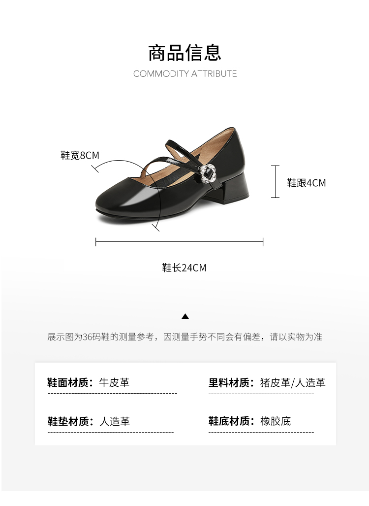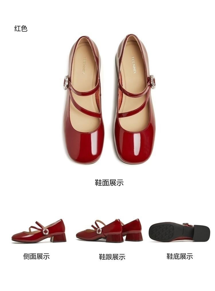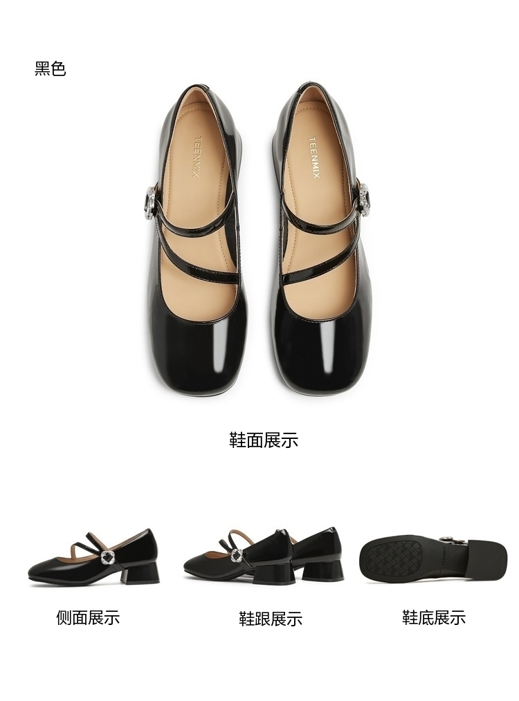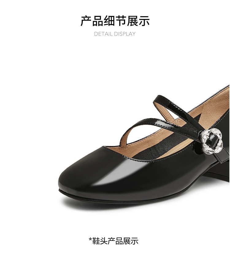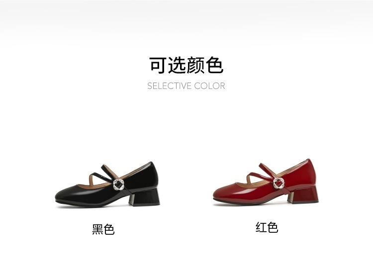 | 上市时间:2025年春季 | 鞋类流行款式:玛丽珍鞋 | 鞋头款式:圆头 | 跟高范围:中跟鞋(3-5CM) | 鞋面图案:纯色 |