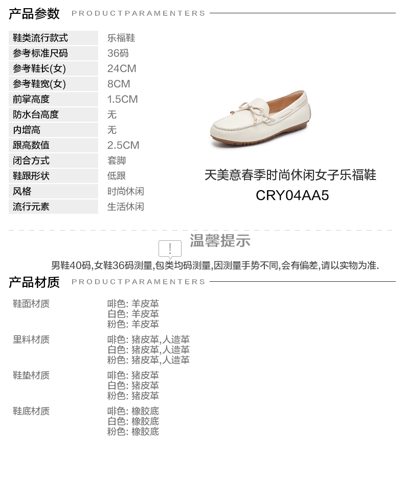 | 渠道划分:线下同步 | 前掌高度:1.5CM | 皮质特征:羊皮革 | 防水台高度:无 | 销售季:2025年春季 |