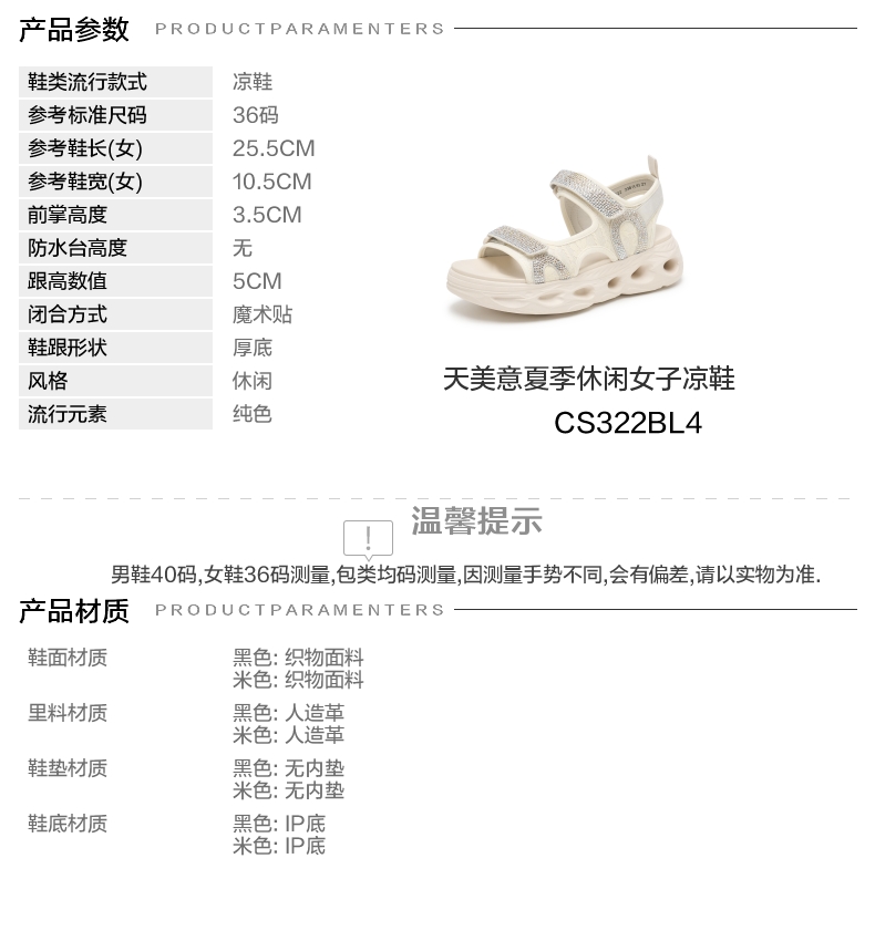 | 款式季节:夏季 | 鞋垫材质:无内垫 | 渠道划分:线下同步 | 前掌高度:3.5CM | 皮质特征:织物 |