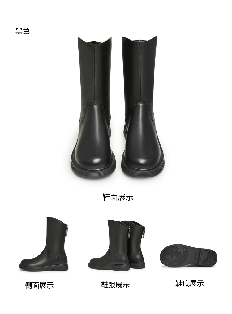 | 鞋底材质:橡胶底 | 靴筒内里材质:织物面料 | 内增高:无 | 鞋面材质:牛皮革 | 闭合方式:后拉链 |