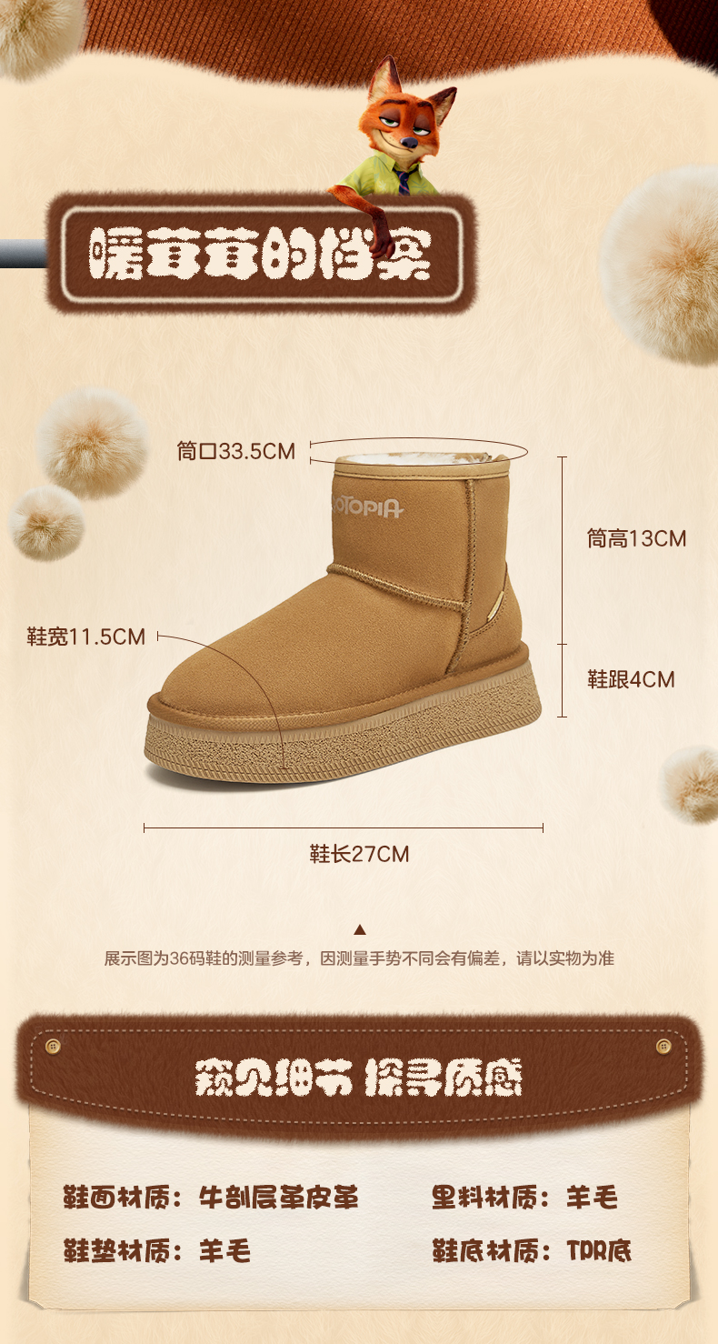 | 帮面材质:牛剖层革 | 靴筒口围:33.5CM | 风格分类:雪地靴 | 上市时间:2024年冬季 | 鞋类流行款式:雪地靴 |