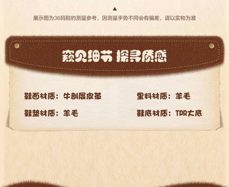 | 帮面材质:牛剖层革 | 配跟:无 | 靴筒口围:34CM | 上市时间:2024年冬季 | 鞋类流行款式:雪地靴 |