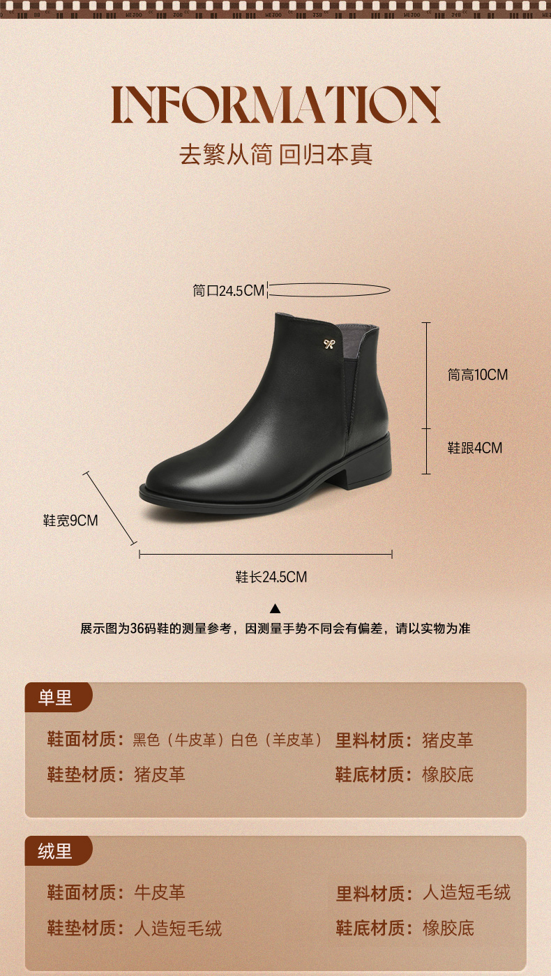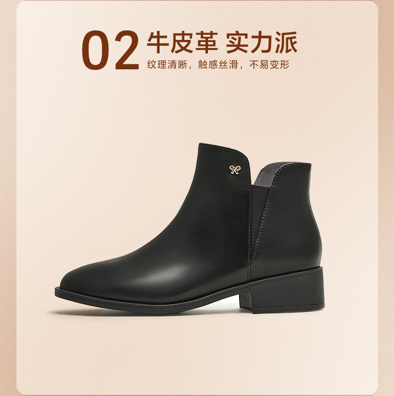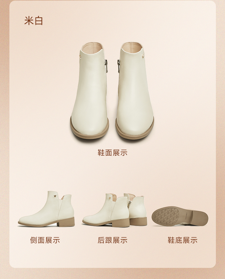 | 闭合方式:侧拉链 | 筒高范围:低靴(5-10CM) | 所在区域:电子商务 | 配跟:无 | 帮面材质:牛皮革 |