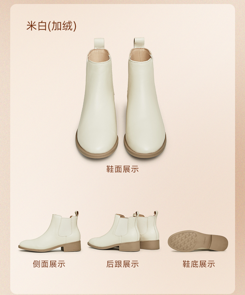 | 帮面材质:织物羊皮 | 配跟:无 | 靴筒口围:26CM | 上市时间:2025年冬季 | 鞋类流行款式:切尔西靴 |