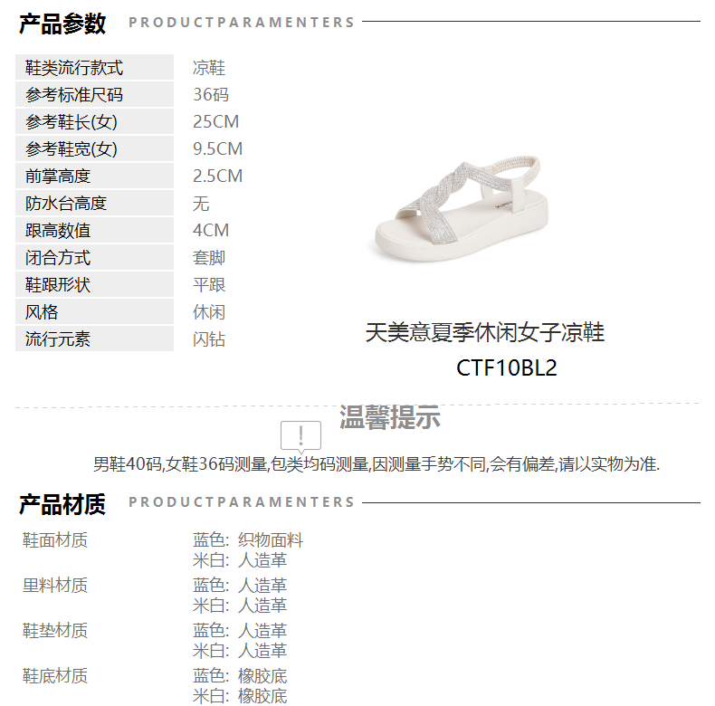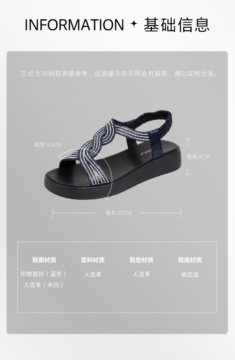 | 跟高范围:中跟鞋(3-5CM) | 鞋面图案:其他 | 鞋跟形状:平跟 | 参考鞋长(女):25CM | 流行元素:闪钻 |