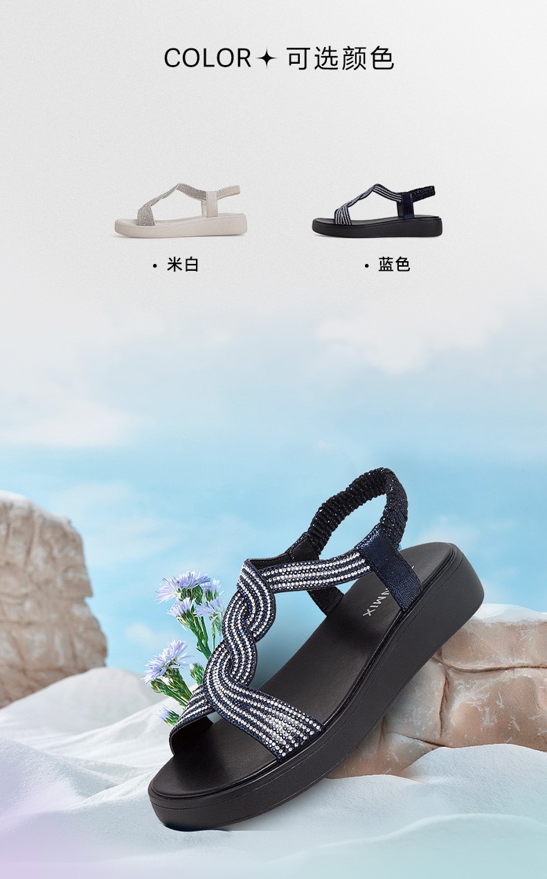 | 渠道划分:线下同步 | 前掌高度:2.5CM | 皮质特征:织物 | 销售季:2023年夏季 | 防水台高度:无 |