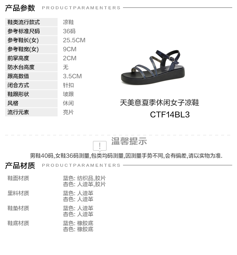 | 参考鞋宽(女):9CM | 风格:休闲 | 色系:蓝色 | 参考标准尺码:36码 | 跟高数值:3.5CM |