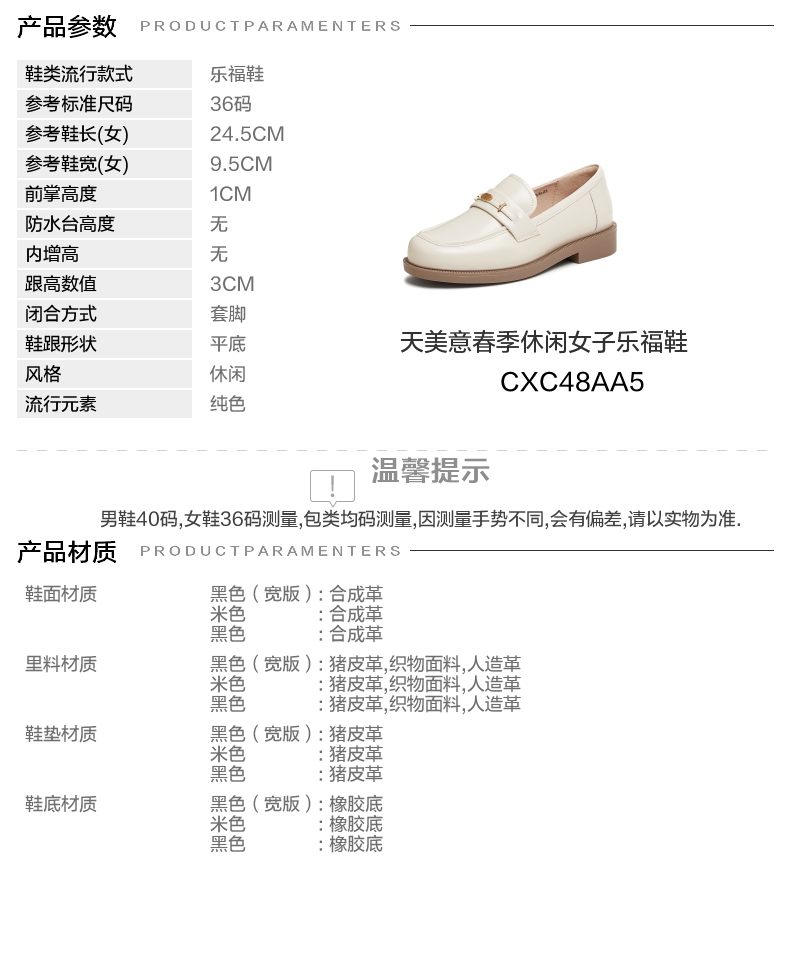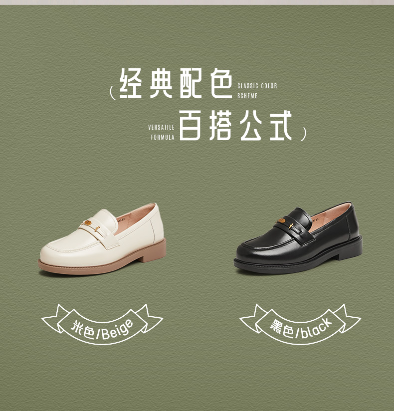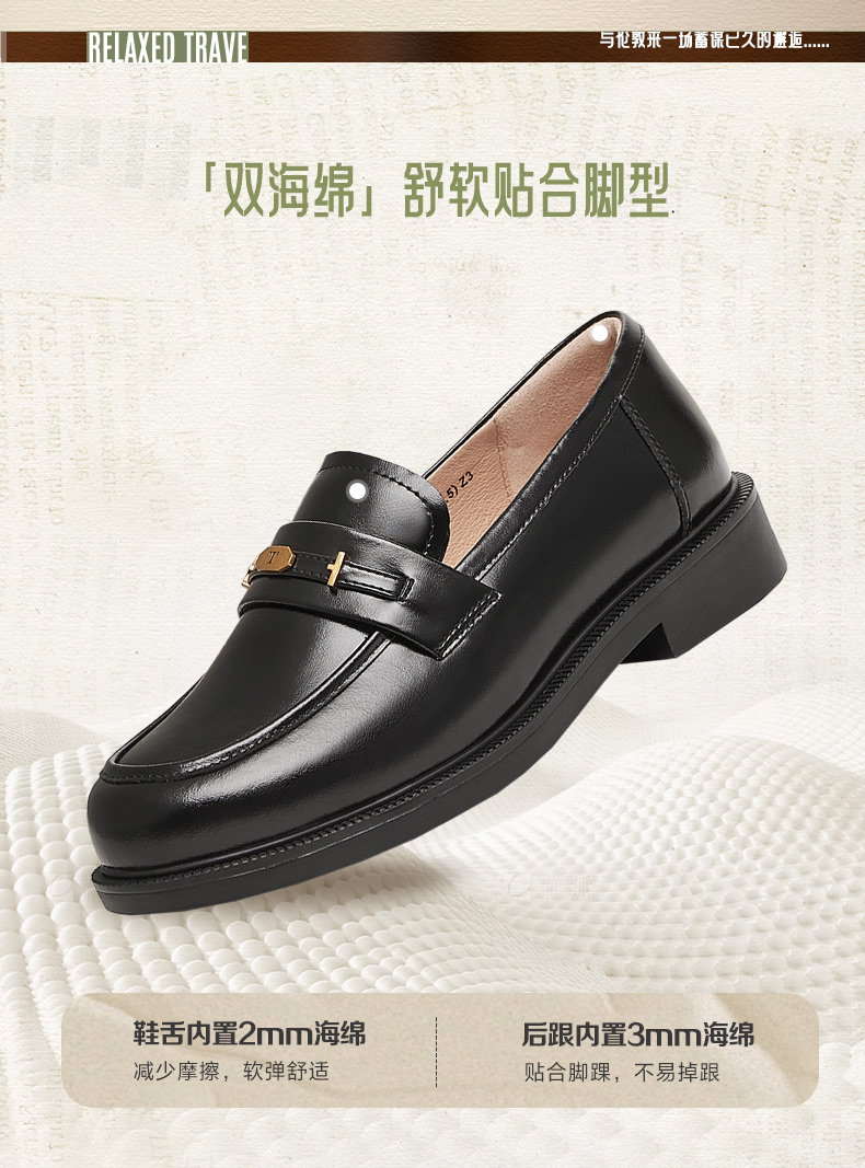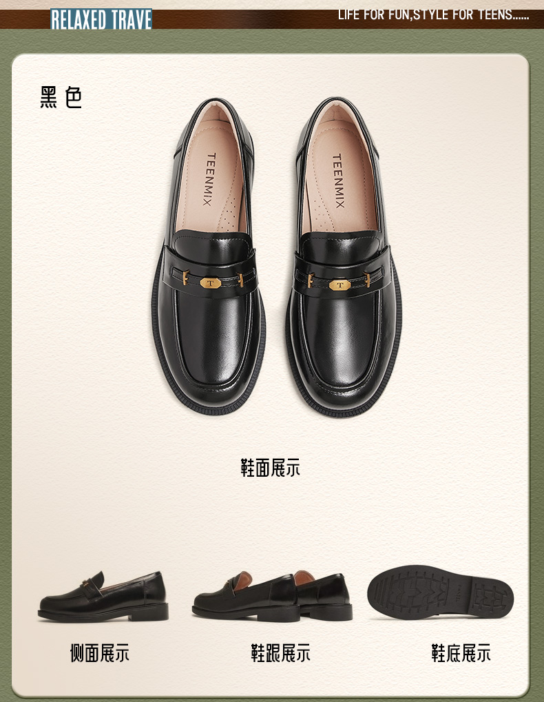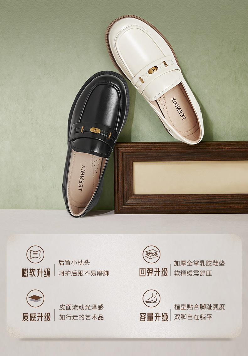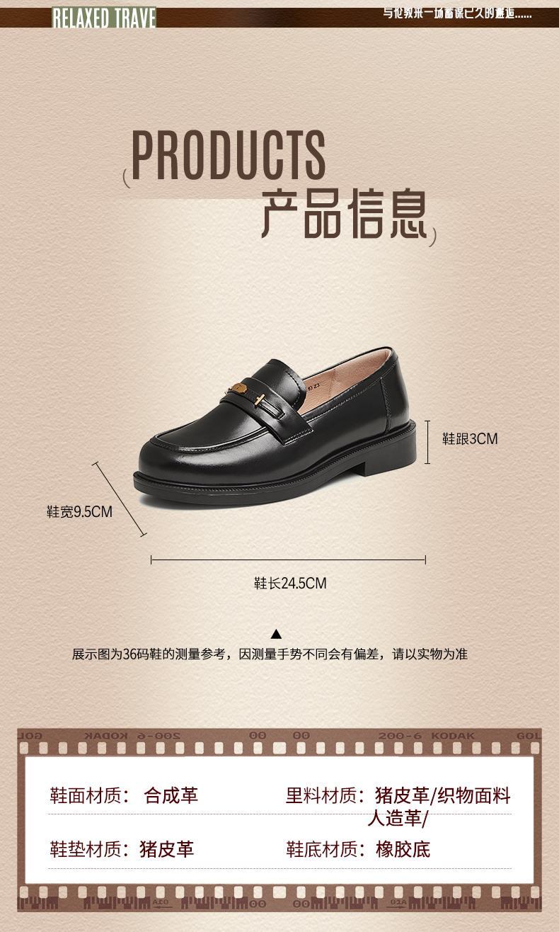 | 配跟:无 | 上市时间:2025年春季 | 鞋类流行款式:乐福鞋 | 鞋头款式:圆头 | 鞋面图案:纯色 |