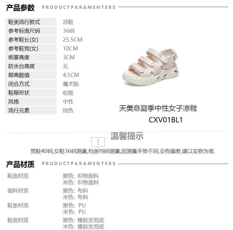 | 皮质特征:织物 | 前掌高度:3CM | 防水台高度:无 | 鞋类流行款式:凉鞋 |