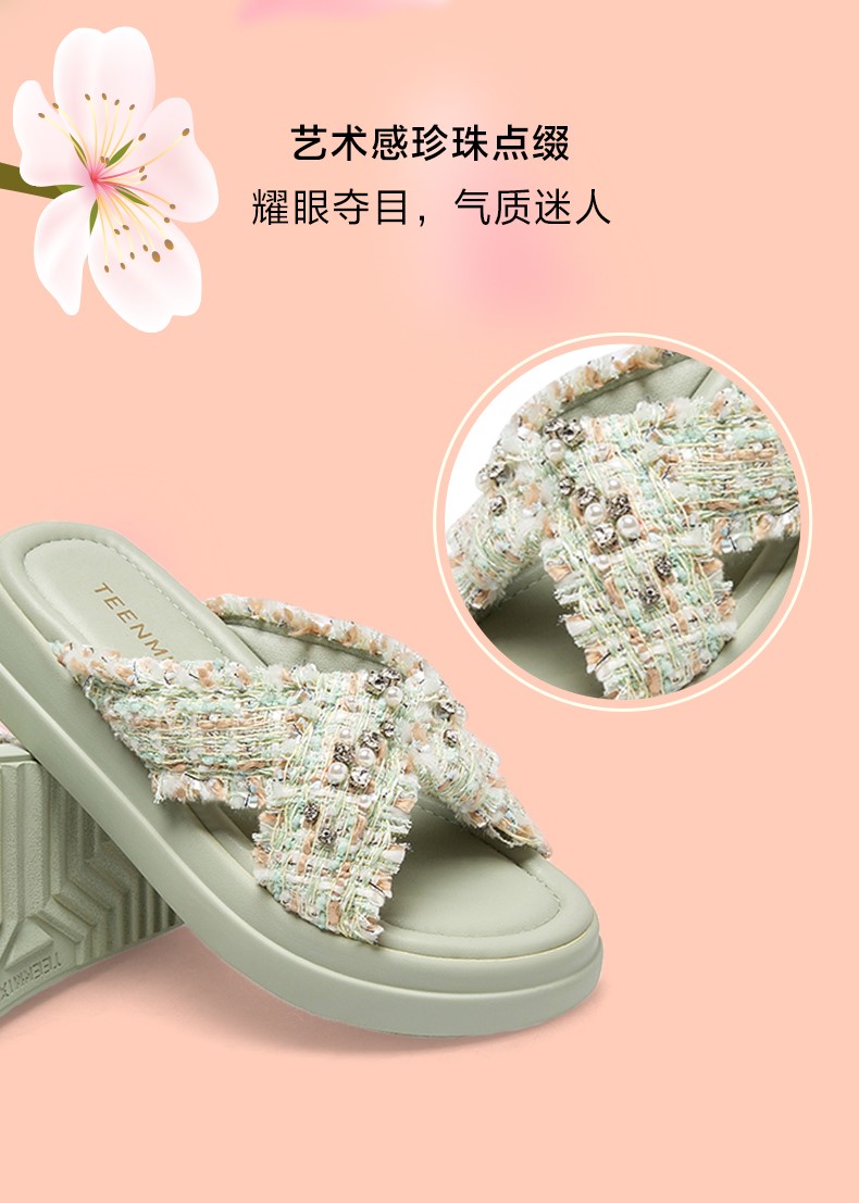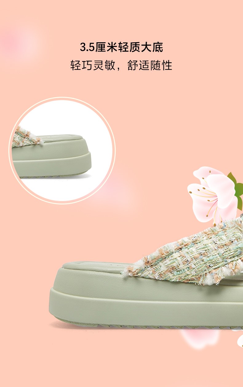 | 皮质特征:布 | 前掌高度:3CM | 防水台高度:无 | 鞋类流行款式:拖鞋 |