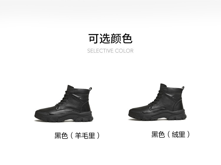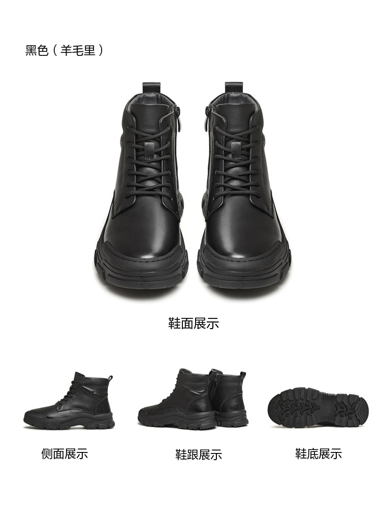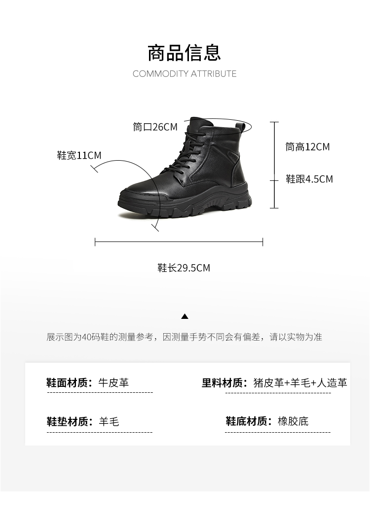 | 40码鞋长参考(男):29.5CM | 鞋底材质:橡胶底 | 靴筒内里材质:人造革羊毛猪皮革 | 内增高:无 | 鞋面材质:牛皮革 |