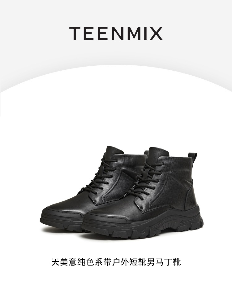 • 天美意2025冬新款商场同款纯色系带户外短靴男马丁靴DED11DD5