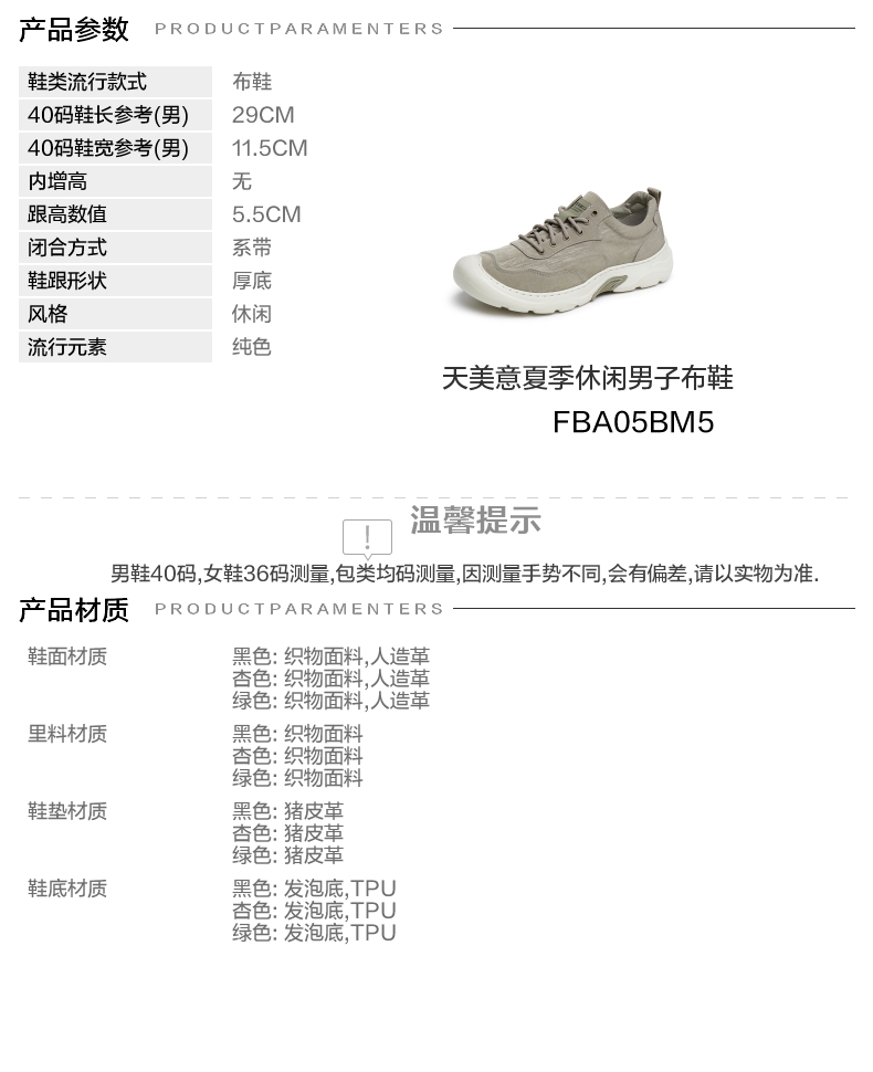 | 40码鞋长参考(男):29CM | 鞋帮:低帮 | 功能科技:耐磨 | 鞋底材质:TPU发泡底 | 鞋面材质:织物面料人造革 |